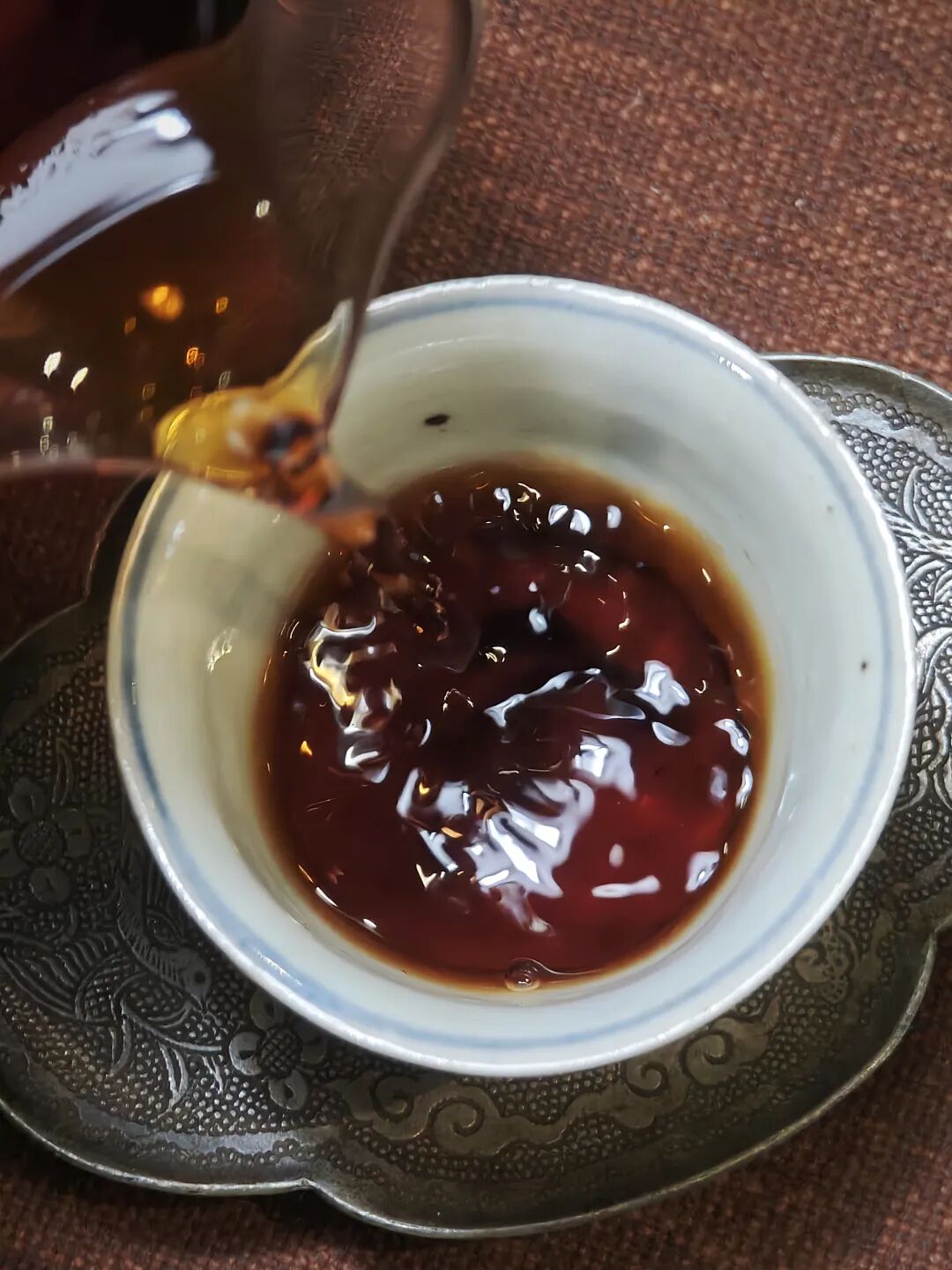 汤色:红浓明亮,油润显金圈,如醇酒动人。