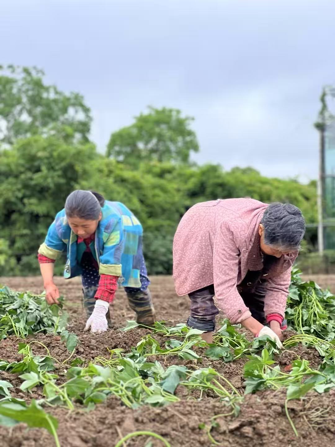除了除草,还要给红薯不断翻藤,翻藤后,田间的透风性和透光性都会得到提升,有利于红薯正常生长。
