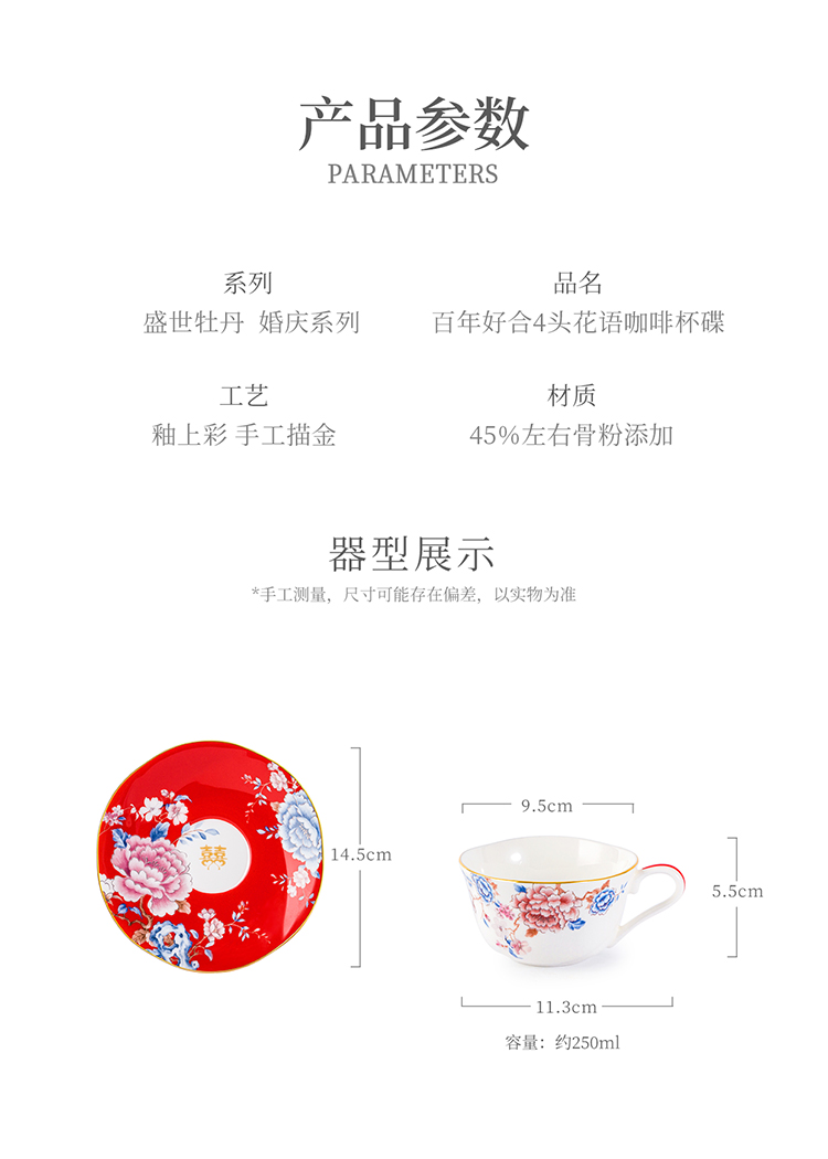【6F】玛戈隆特 婚庆4头咖啡杯碟套装家用精致下午茶杯子套装礼盒装