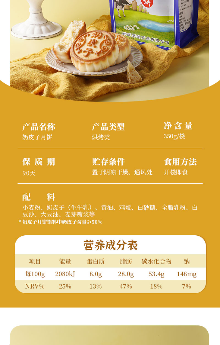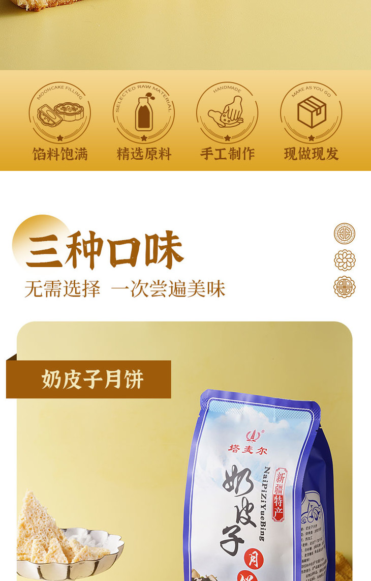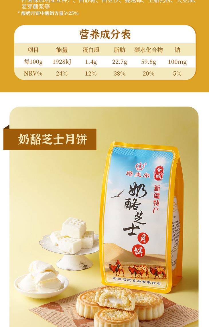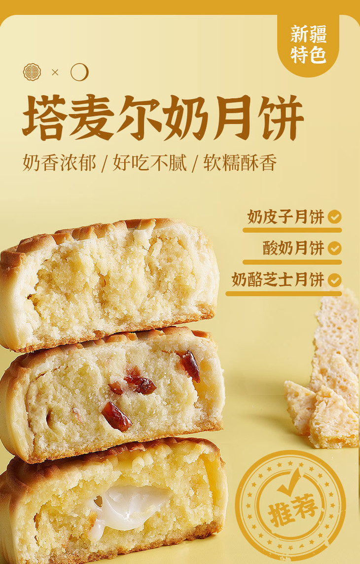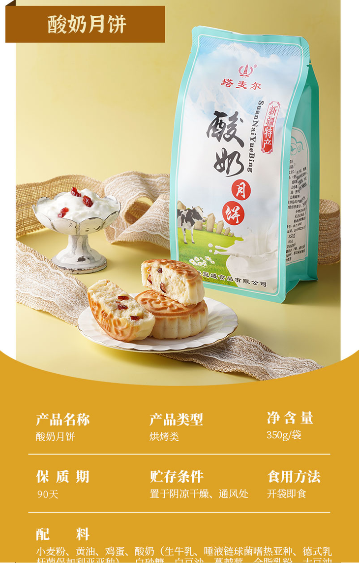 | 【品名】塔麦尔新疆奶皮子月饼/酸奶月饼/奶酪芝士月饼 【规格】350g/袋(4个装) 【保质期】90天 【储存方法】请置于阴凉干燥处,避免阳光直射 【产地】新疆 【发货地】新疆 【发货快递】中通 【不发货区域】西藏,海南,港澳台地区不发 【发货时效】48小时,节假日顺延 【温馨提示】路途遥远,产品一经发出后不支持拦截和拒收,请谅解! |