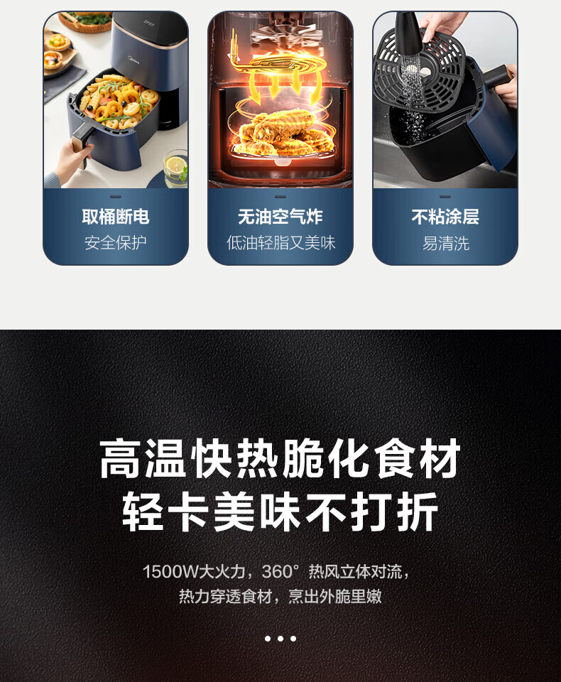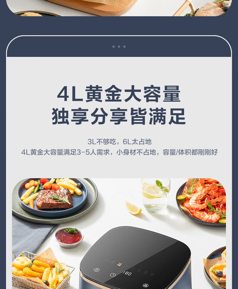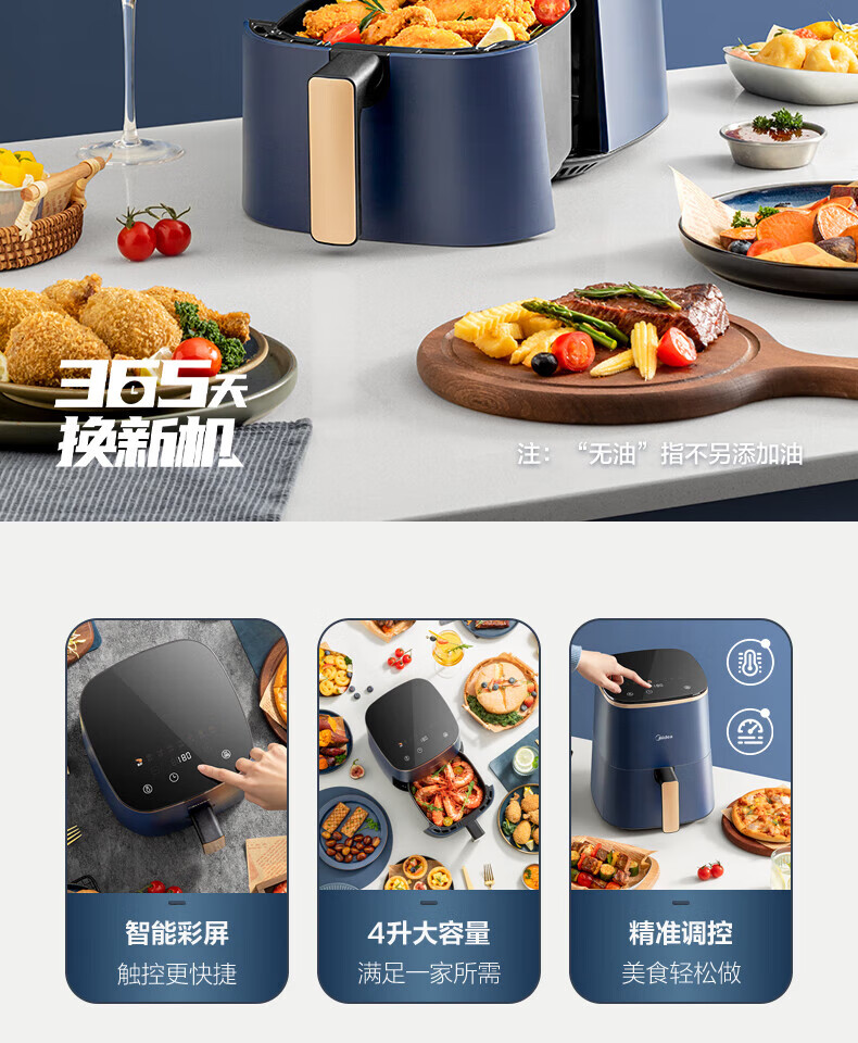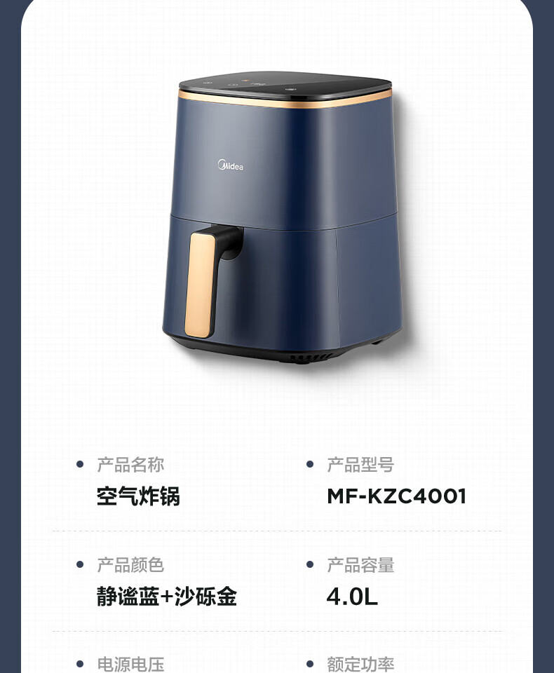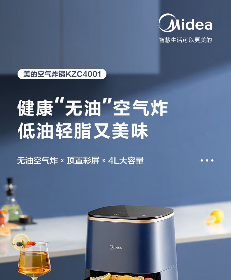 美的(Midea)空气炸锅4L家用多功能大可视全自动薯条机烤箱智能电炸锅MF-KZC4001