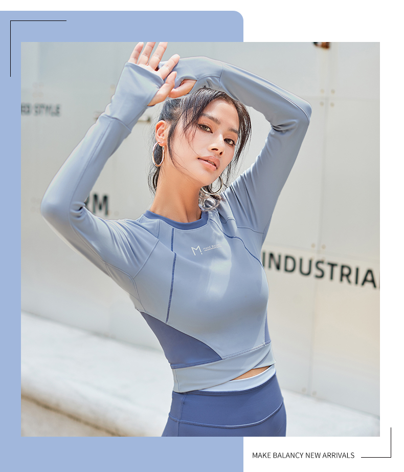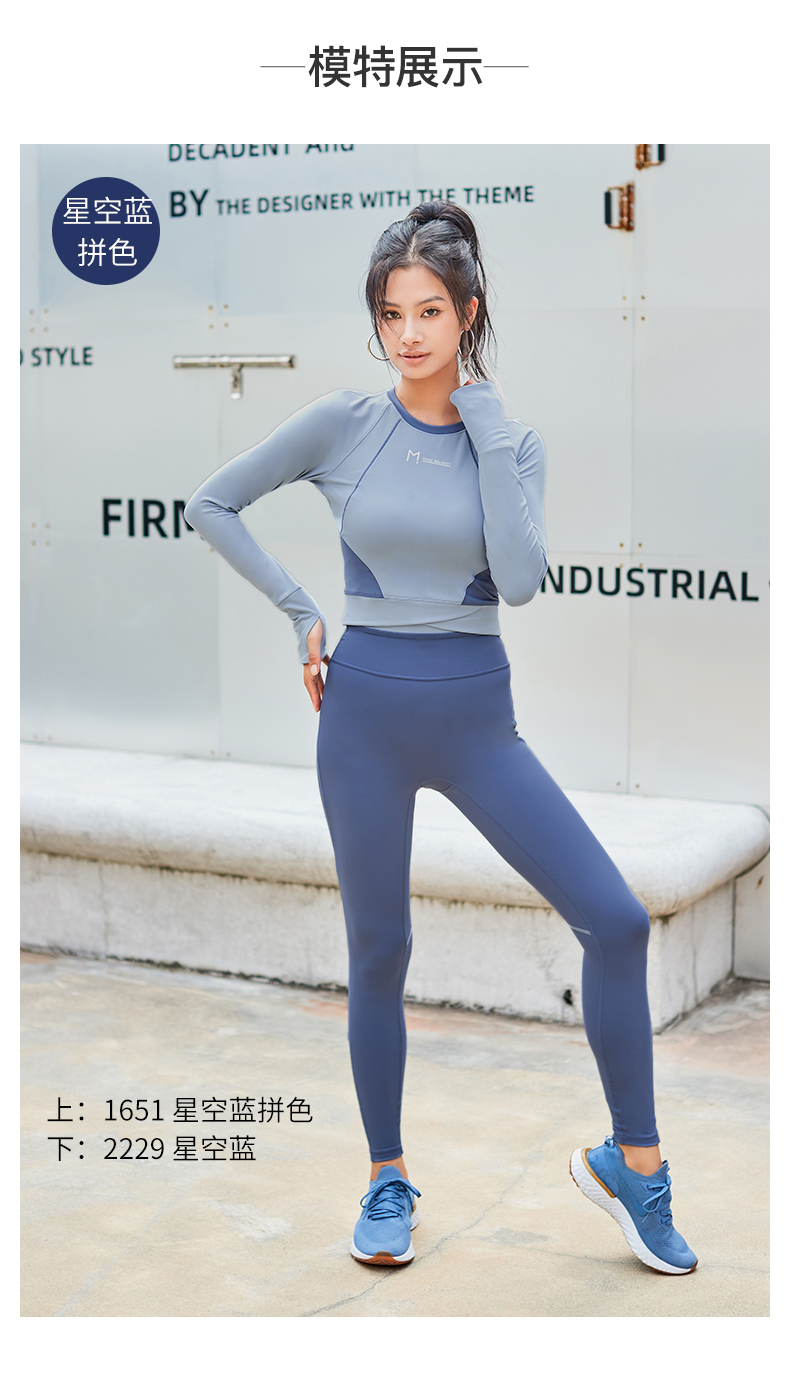 水沐伊朵旗下慕柏郦秋冬撞色跑步长袖上衣运动瑜伽裤1651
