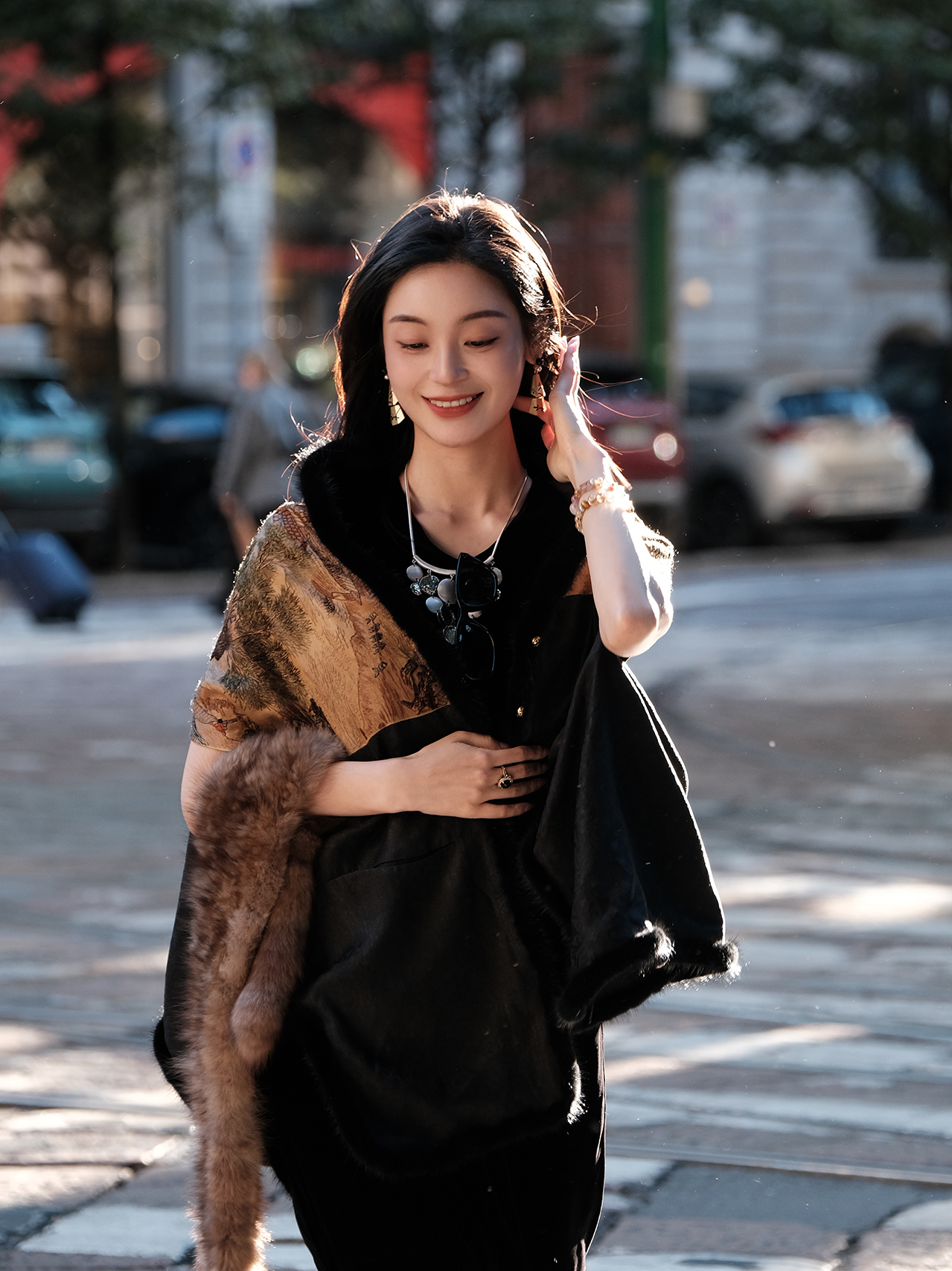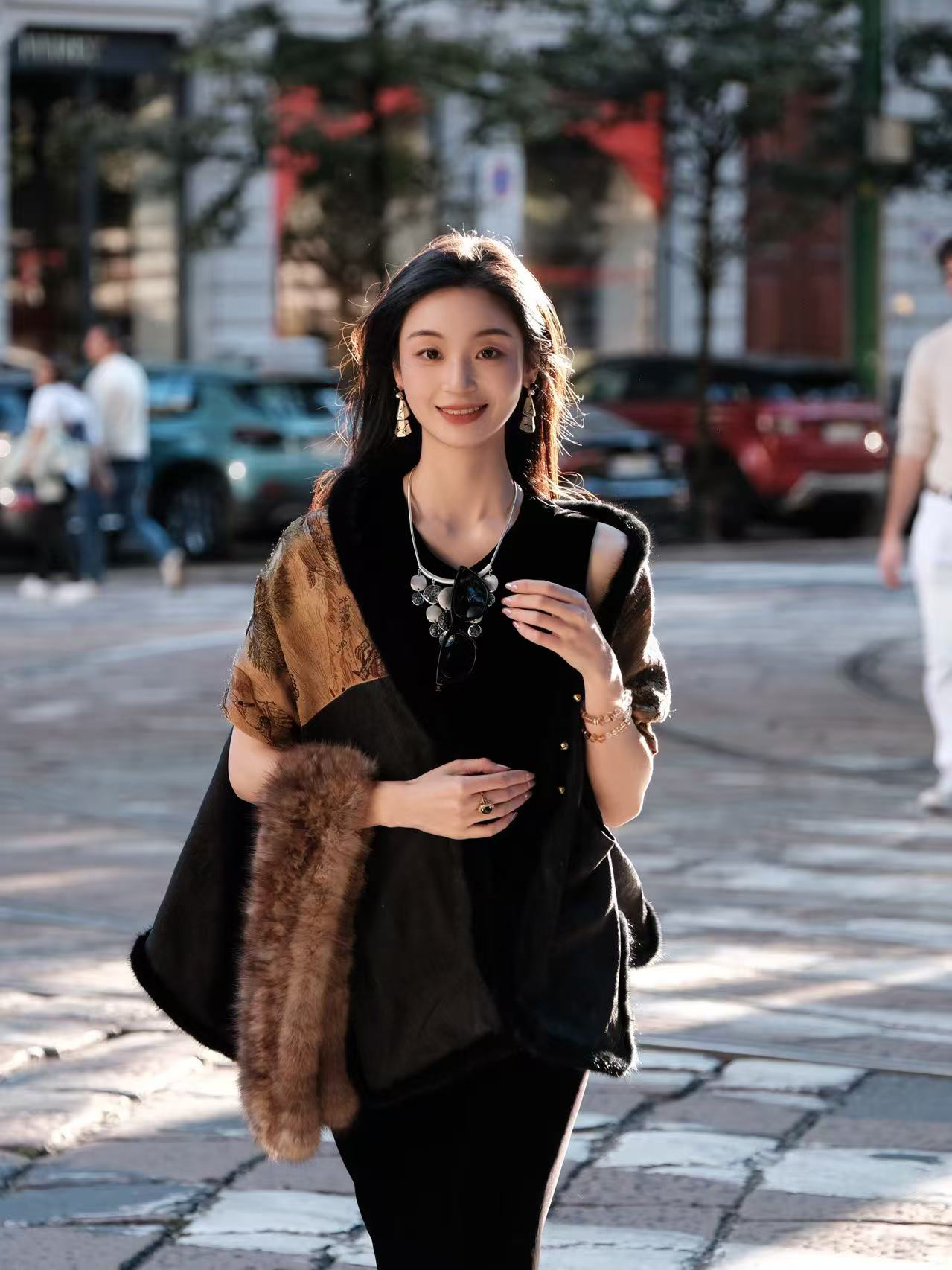 盛唐婧 | 轻奢非遗老缎苗绣披肩外套(售完不补)