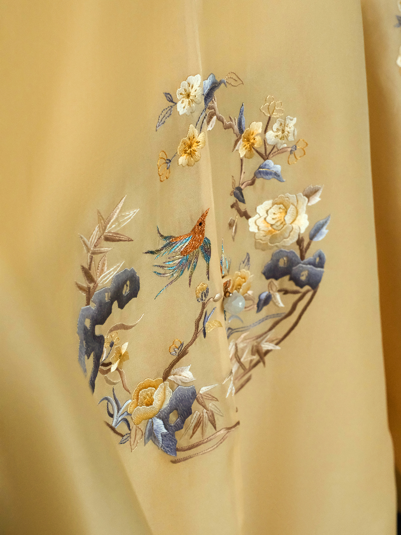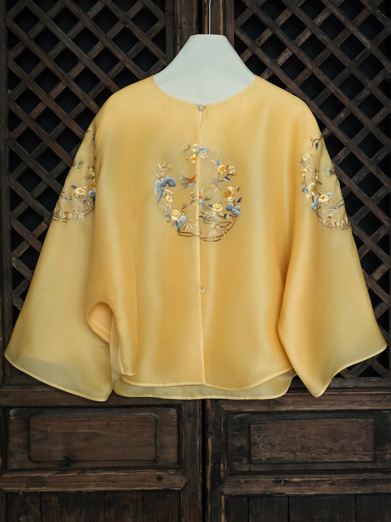 盛唐牡丹大师系列| 喜上眉梢团纹欧根缎手绣外套-黄色