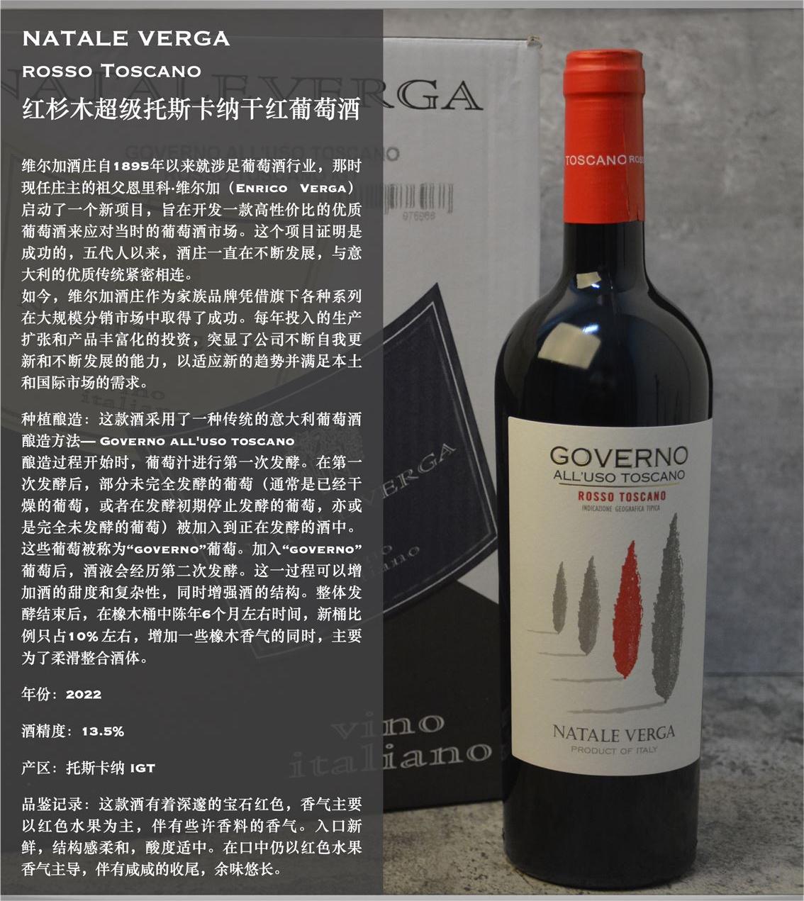 酒庄拥有非常现代化的酿酒车间,酿酒师所推崇的酿造工艺以保持葡萄的天然风味和香气为核心。这款红杉木干红葡萄酒则采用更加传统的酿造方式,是托斯卡纳地区独有的一种酿造方式--Governo al' uso toscano酿造过程开始时,葡萄汁进行第一次发酵。在第一次发酵后,部分未完全发酵的葡萄(通常是已经干燥的葡萄,或者在发酵初期停止发酵的葡萄,亦或是完全未发酵的葡萄)被加入到正在发酵的酒中。这些葡萄被称为“governo”葡萄。加入“governo””葡萄后,酒液会经历第二次发酵。这一过程可以增加酒的甜度和复杂性,同时增强酒的结构。整体发酵结束后,在橡木桶中陈年6个月左右时间,新桶比例只占10%左右,增加一些橡木香气的同时,主要为了柔滑整合酒体。这一酿造方式的特点与影响一是可以增强酒体。这种技术可以增加酒的酒精度和复杂性,使其具有更丰富的风味和更好的结构。二是增加风味的复杂度。使用“governo”技术的酒通常会带有更浓郁的水果风味和甜美的口感,同时展现出独特的风味层次。三是增加风味的独特性。这种方法赋予酒独特的风味特征,常常带有成熟的水果、干果和香料的香气。