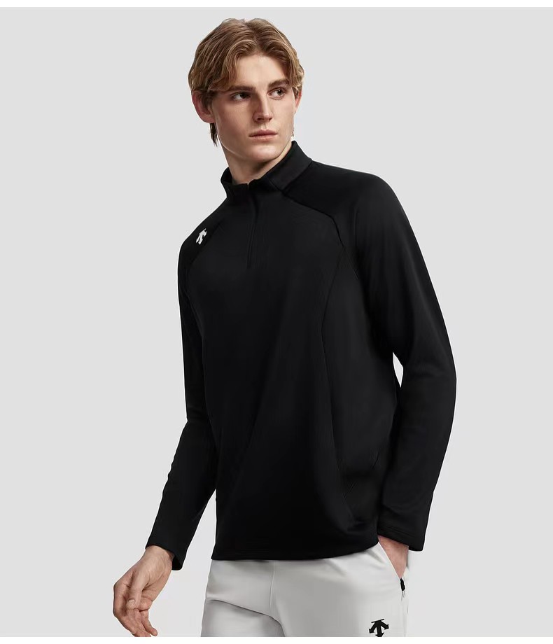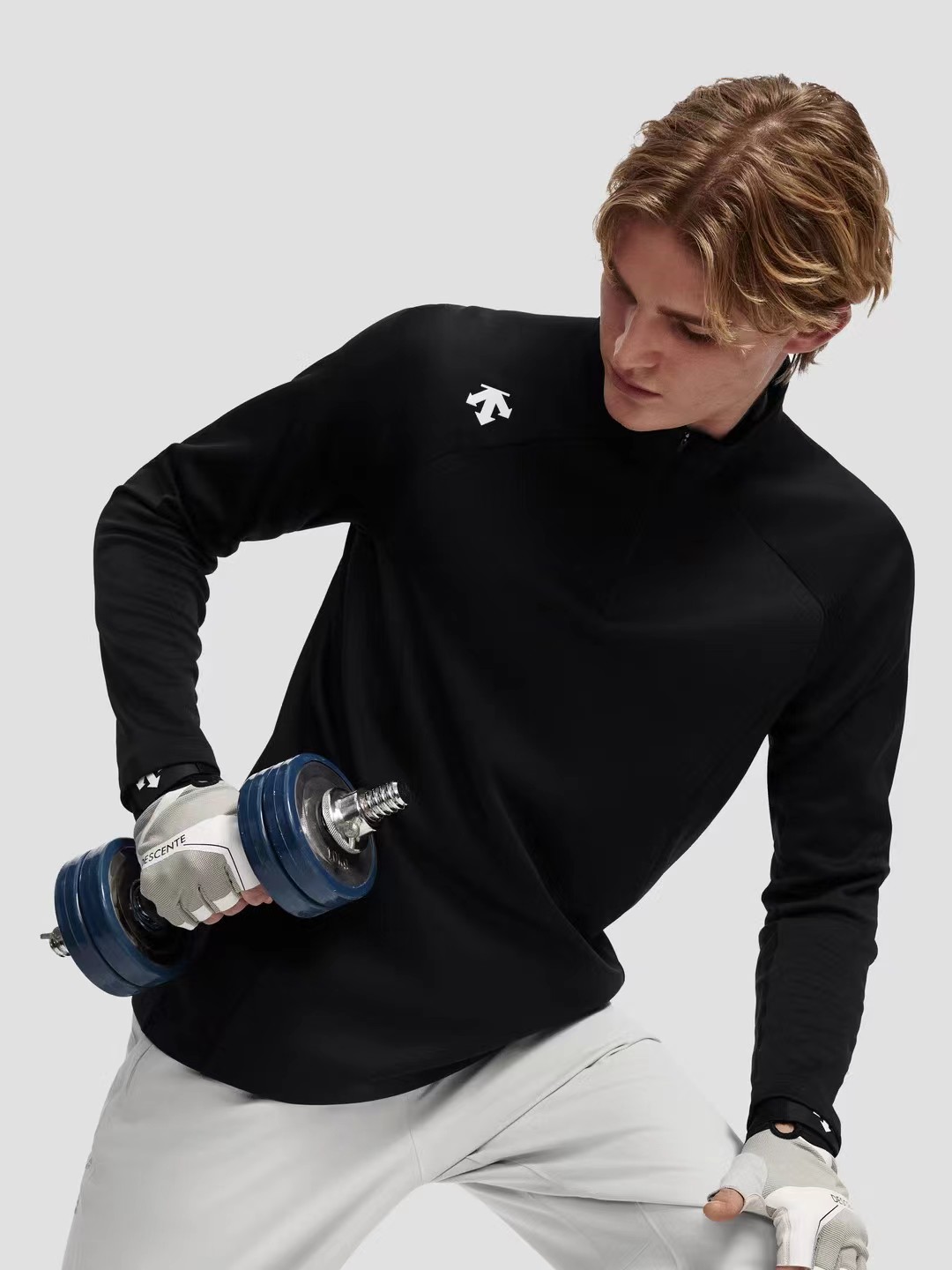 TRAINING男士SOLOTEX长袖半拉链贴身保暖针织衫,春 秋单穿!冬季还可以当做内搭!非常实用!采用SOLOTEX双面布空气面料,兼具弹力与柔软触感,贴身保暖且活动自如。精典半拉链设计方便穿脱,插肩袖结构扩展肩部运动范围。贴合版型兼顾运动灵活与日常穿搭,适应综训、休闲等多种场景。