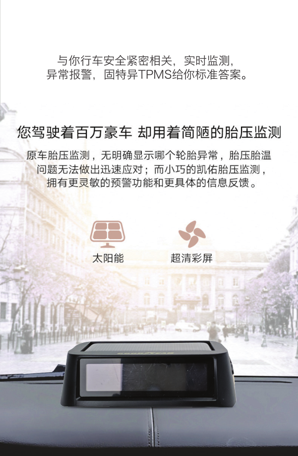 固特异 胎压监测内置太阳能汽车通用无线高精度胎压检测器 (黑色)