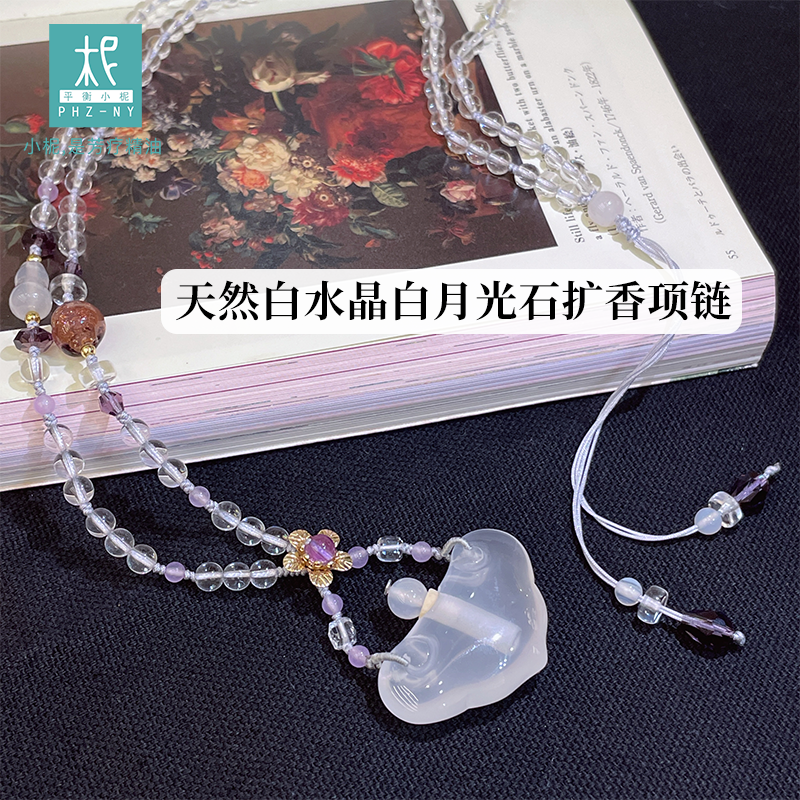 天然白水晶白月光石扩香项链 时尚优雅 简约 平安如意