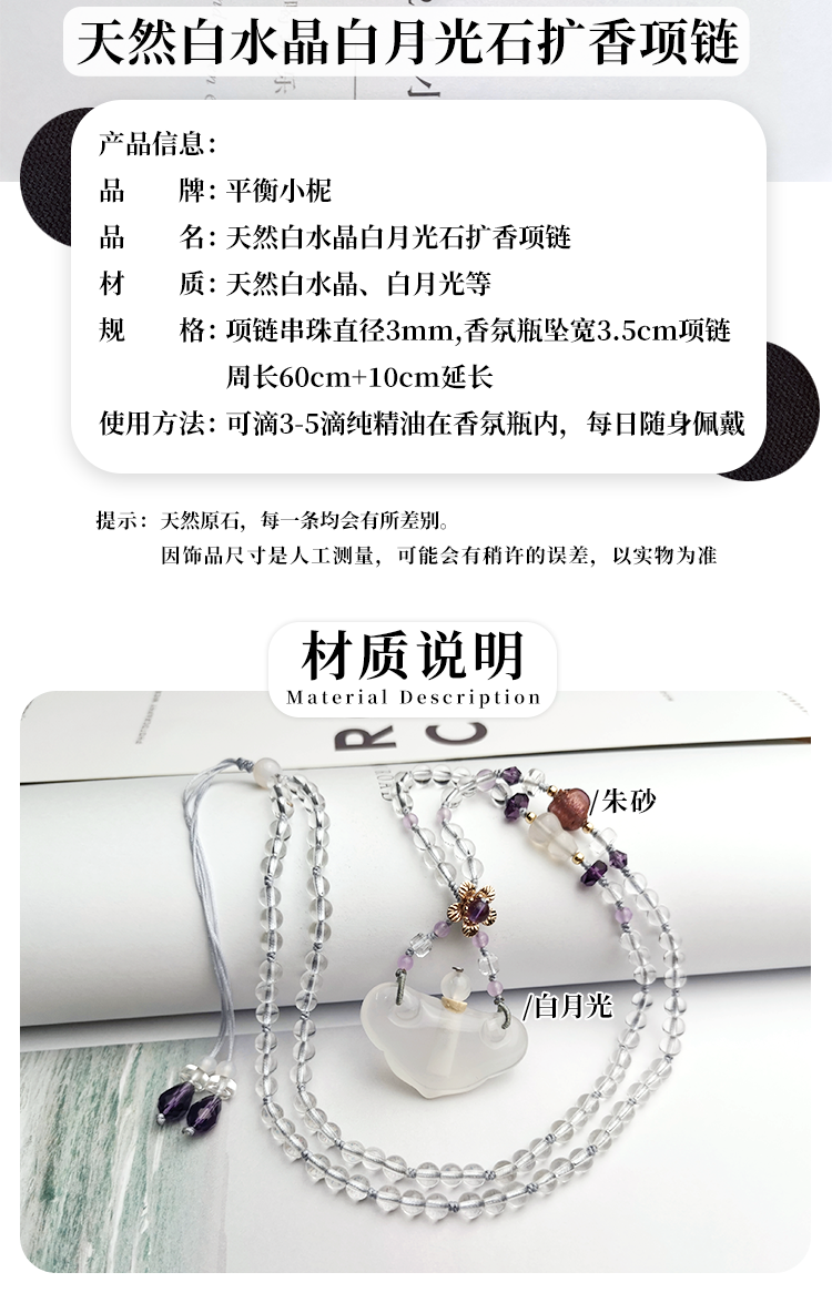 天然白水晶白月光石扩香项链 时尚优雅 简约 平安如意 商品缩略图0 天然白水晶白月光石扩香项链 时尚优雅 简约 平安如意 商品缩略图1 天然白水晶白月光石扩香项链 时尚优雅 简约 平安如意 商品缩略图2