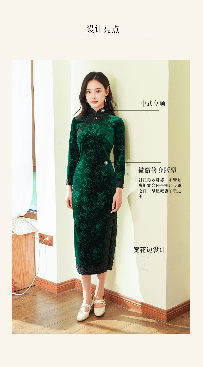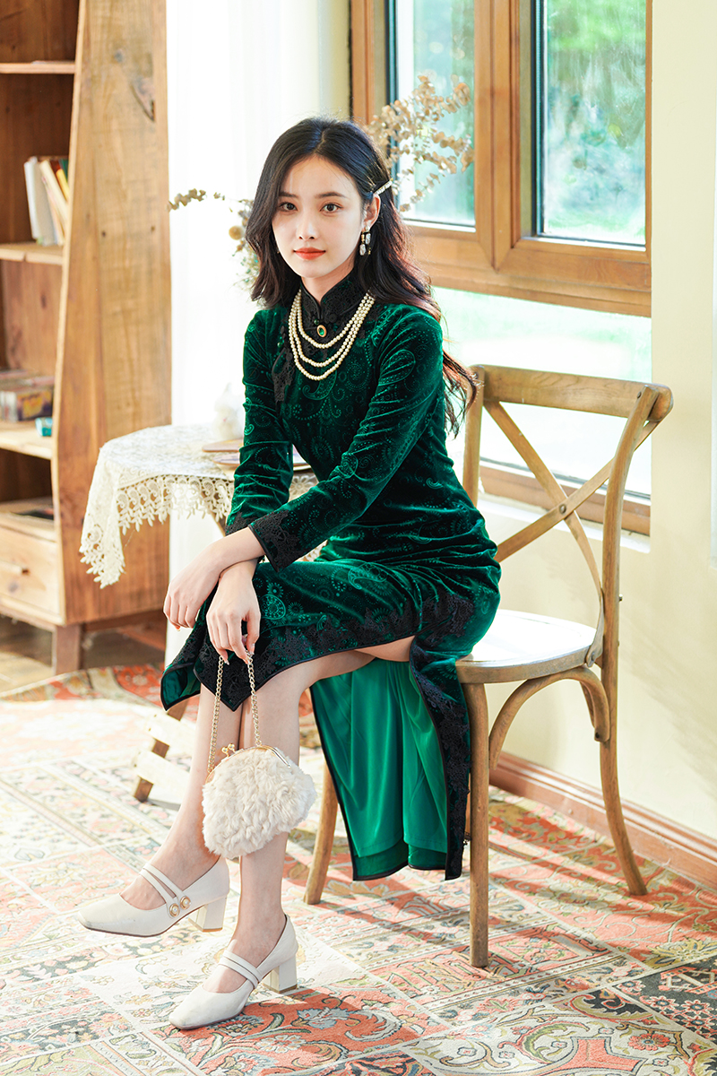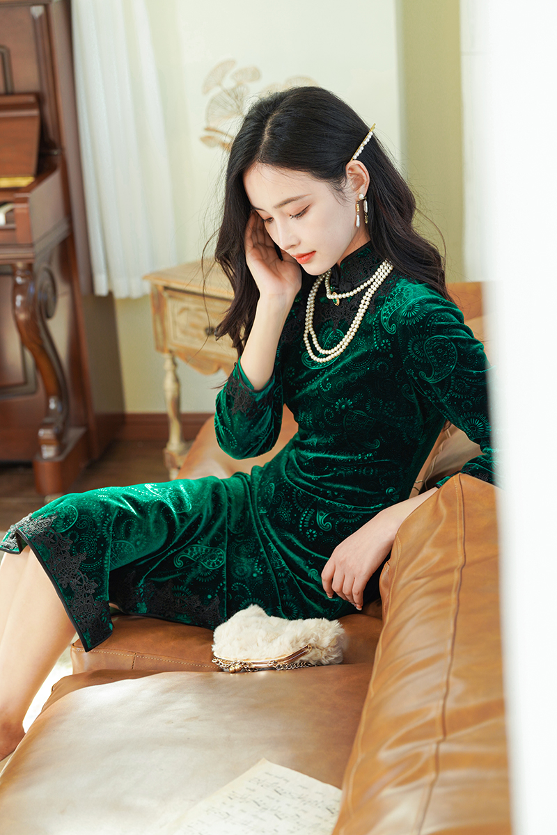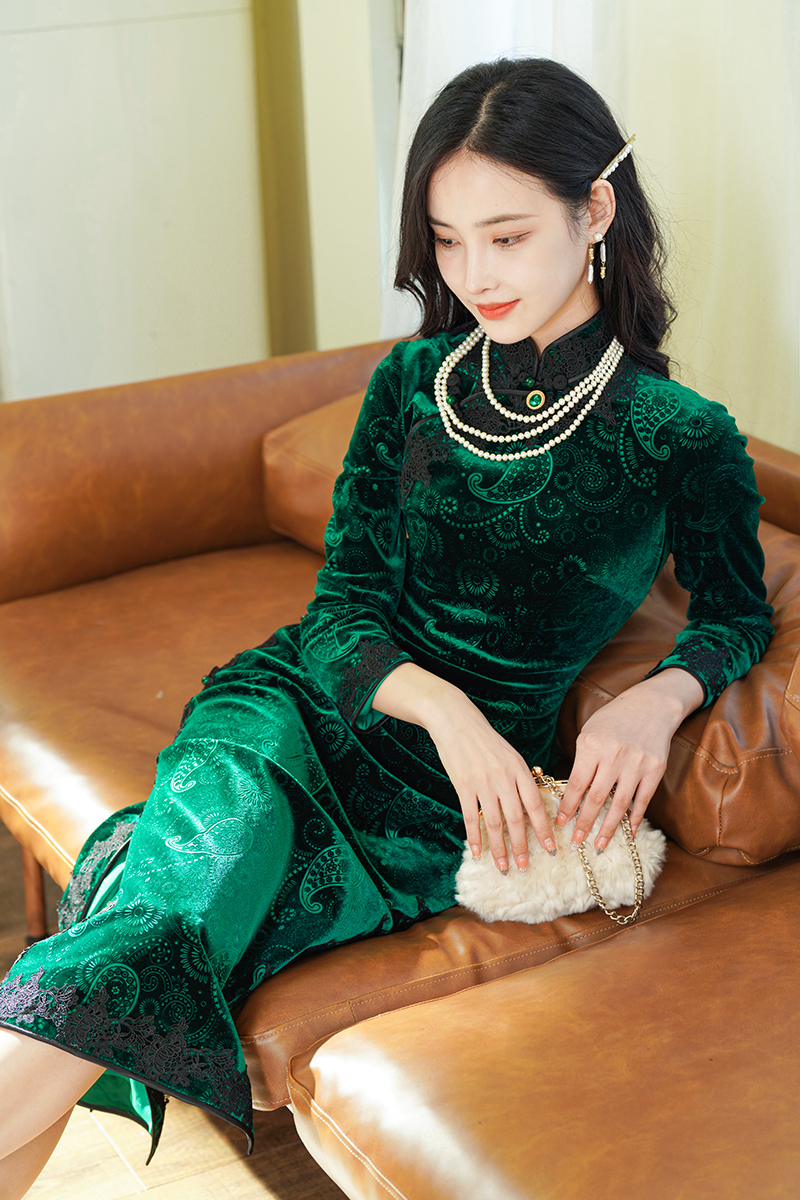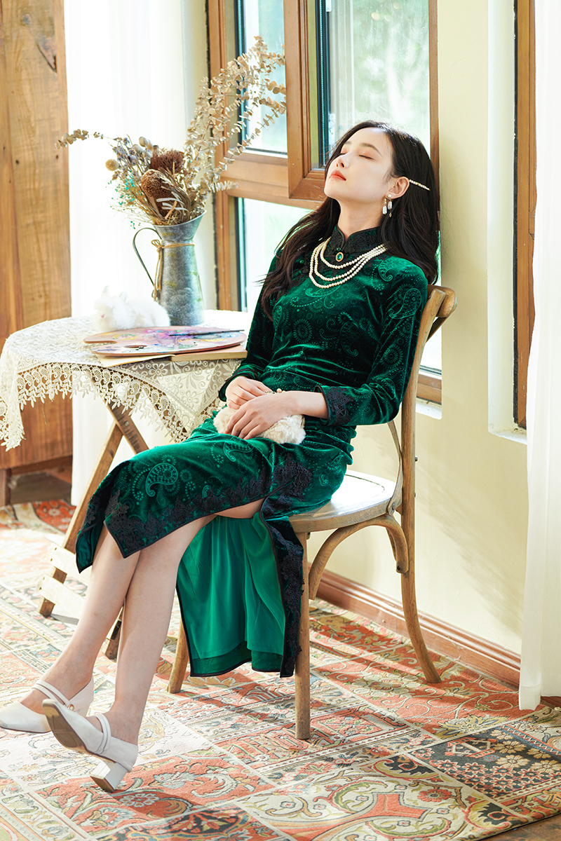 如浮雕般立体丝绒旗袍