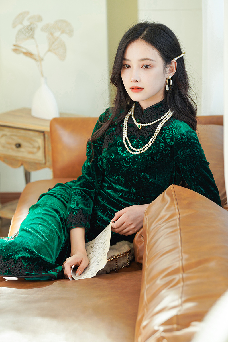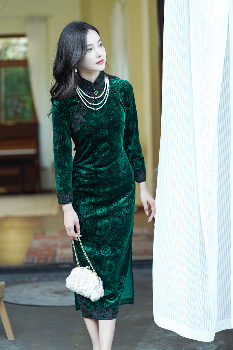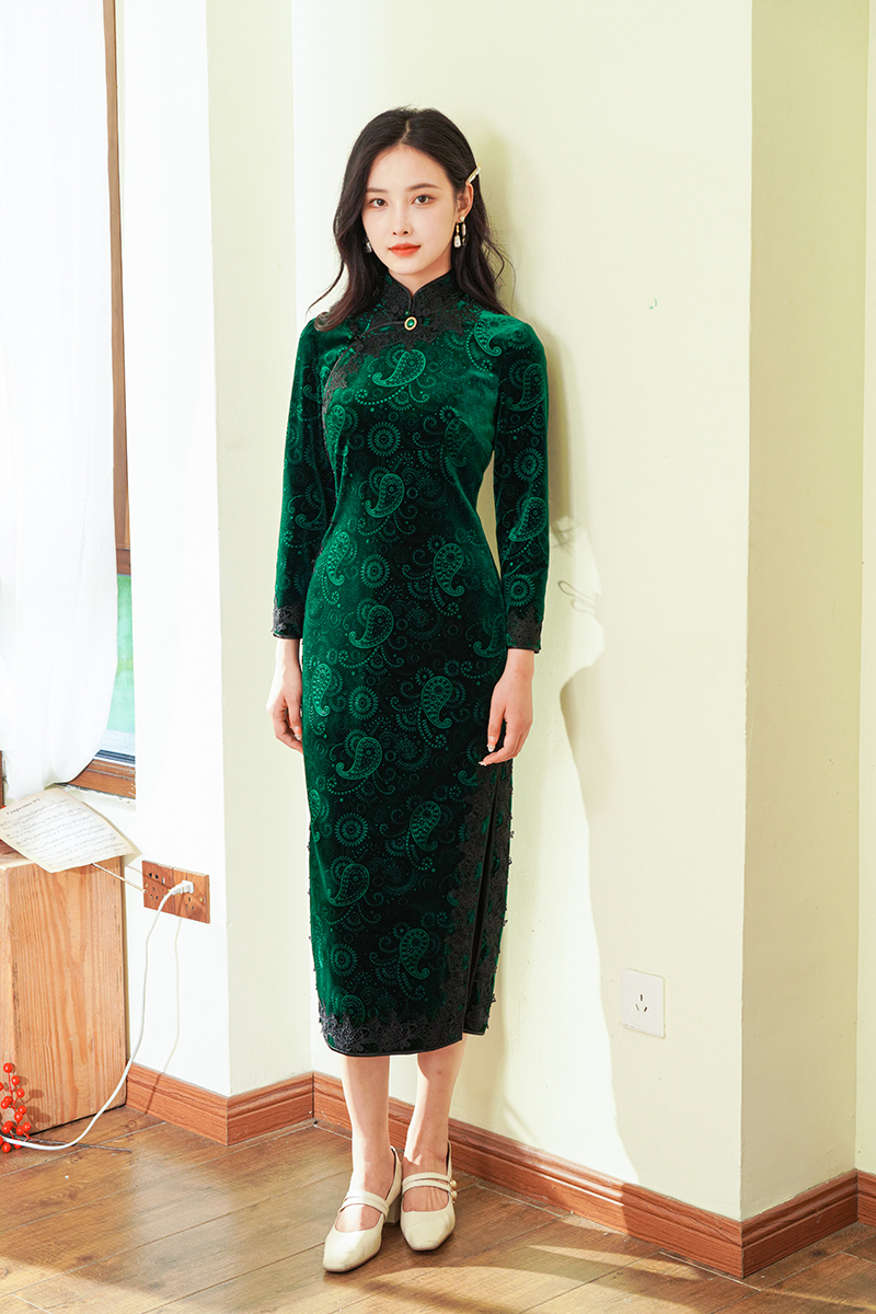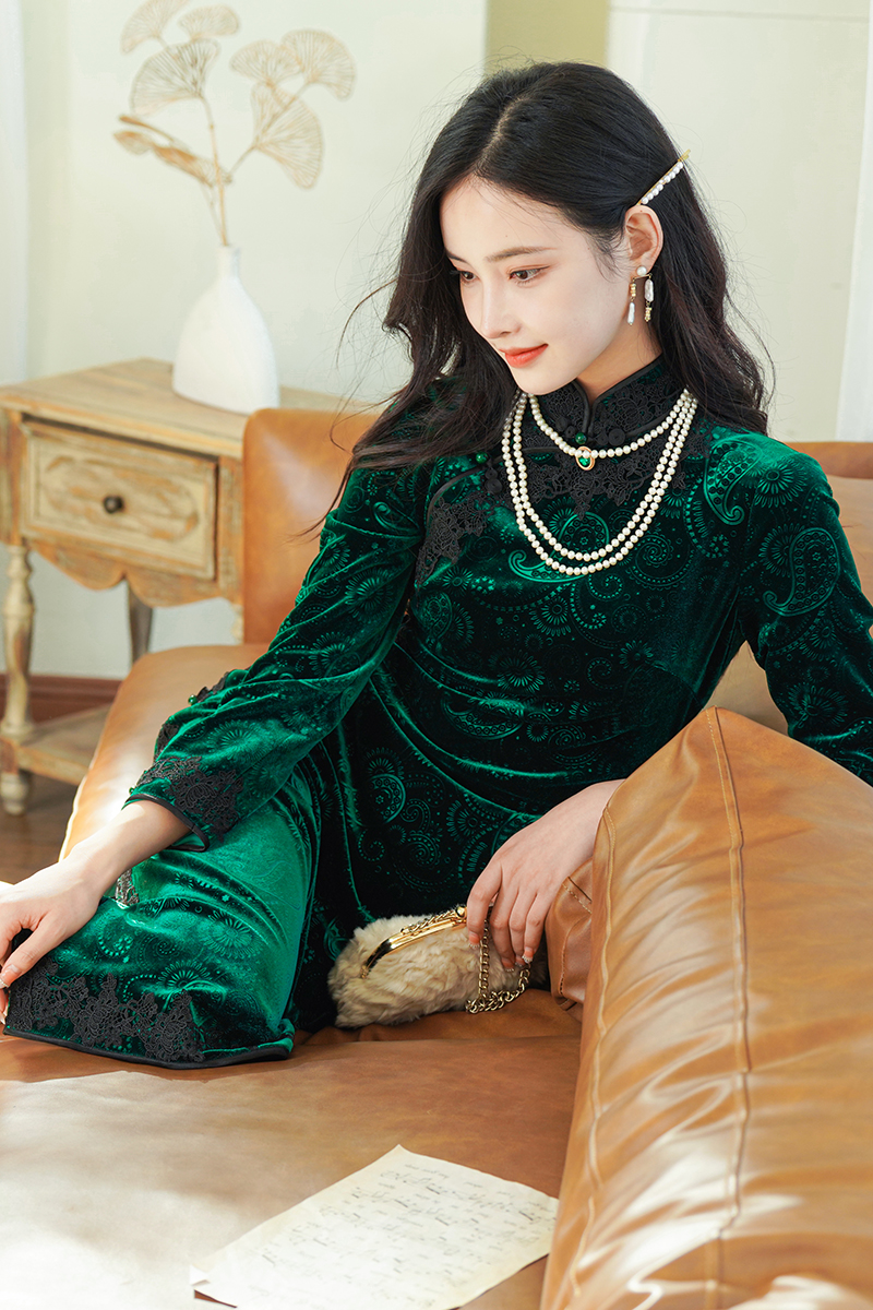 如浮雕般立体丝绒旗袍