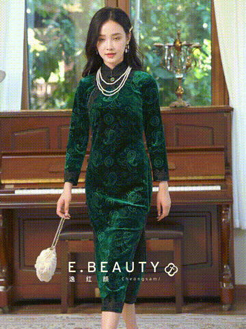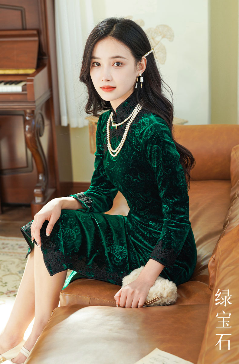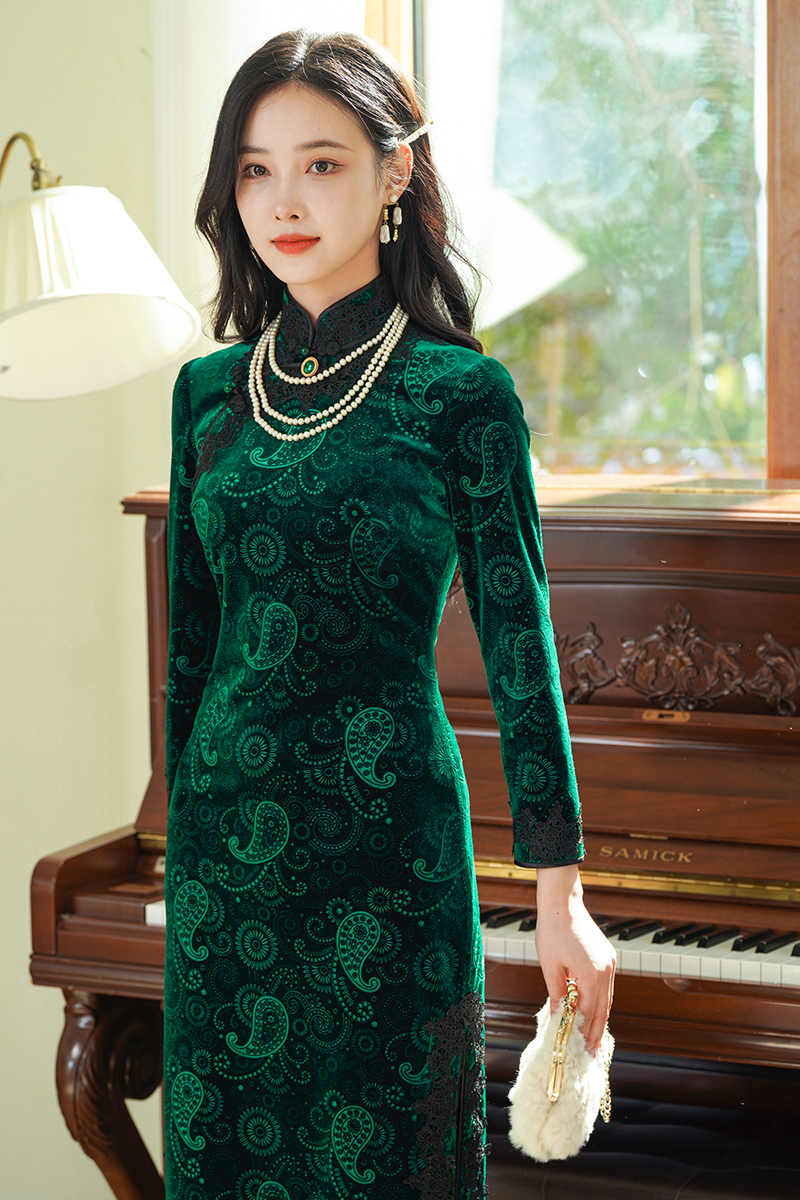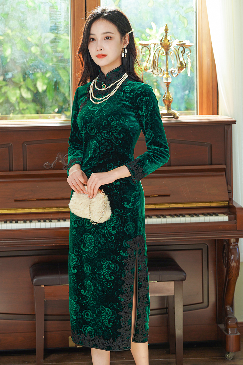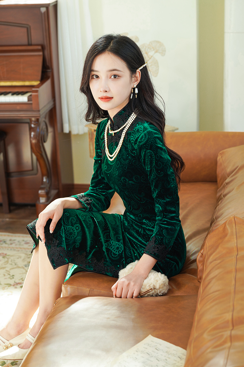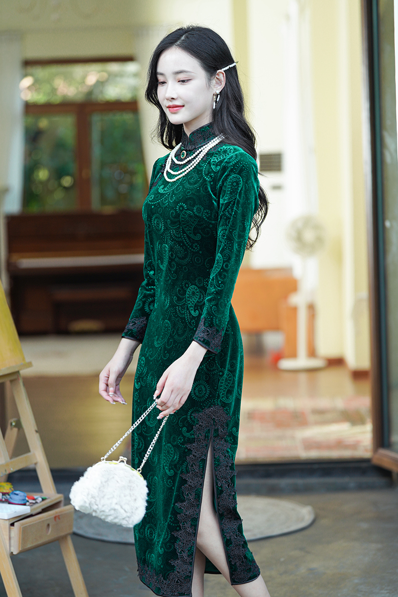 如浮雕般立体丝绒旗袍