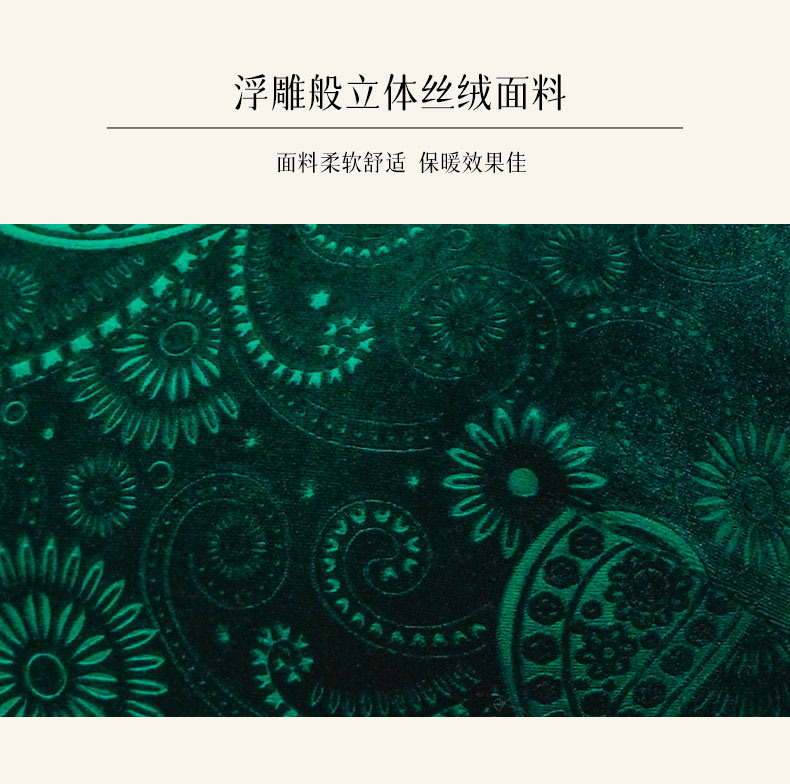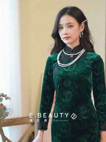 它是旗袍里面的小高定,丝绒压花工艺,300多克进口丝绒,微弹。如浮雕般立体工艺,近看精致的光泽挡不住它的贵气感,远看如一件“艺术品”。里布给大家用的是特别舒服的里布,比市面上好的里布贵2倍还多,上身非常舒适。