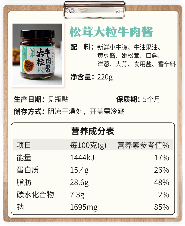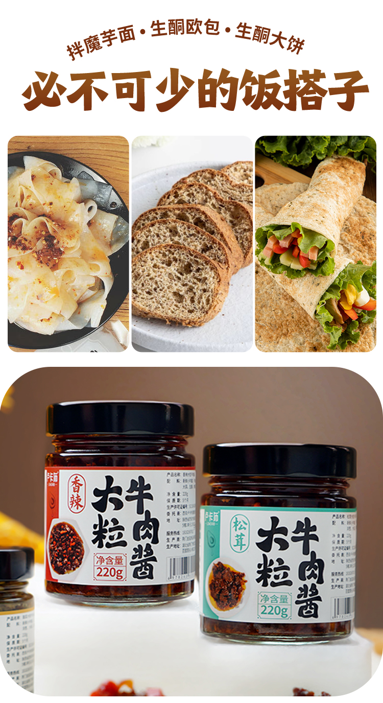 野兽优选|卢卡布大粒牛肉酱220g/瓶 香辣/松茸 商品图4