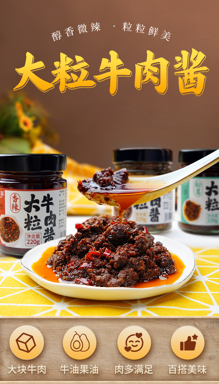 野兽优选|卢卡布大粒牛肉酱220g/瓶 香辣/松茸 商品图2
