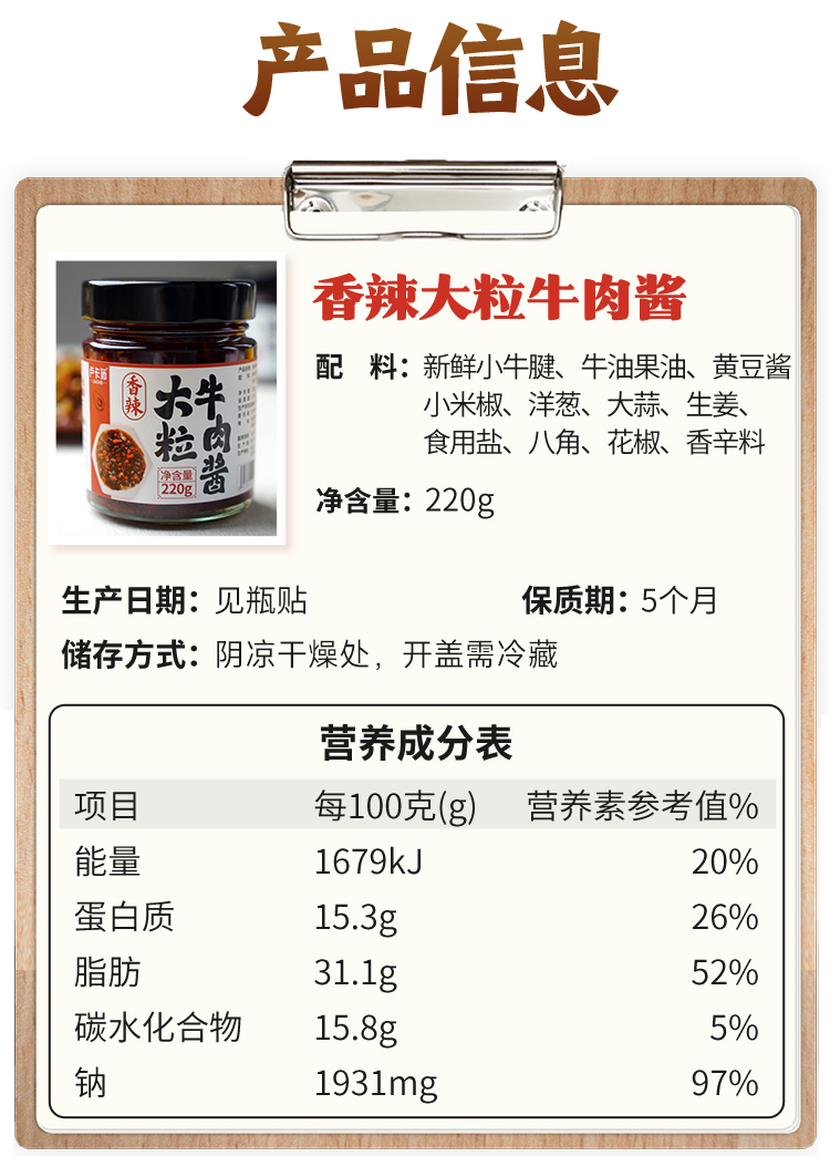 野兽优选|卢卡布大粒牛肉酱220g/瓶 香辣/松茸 商品图3