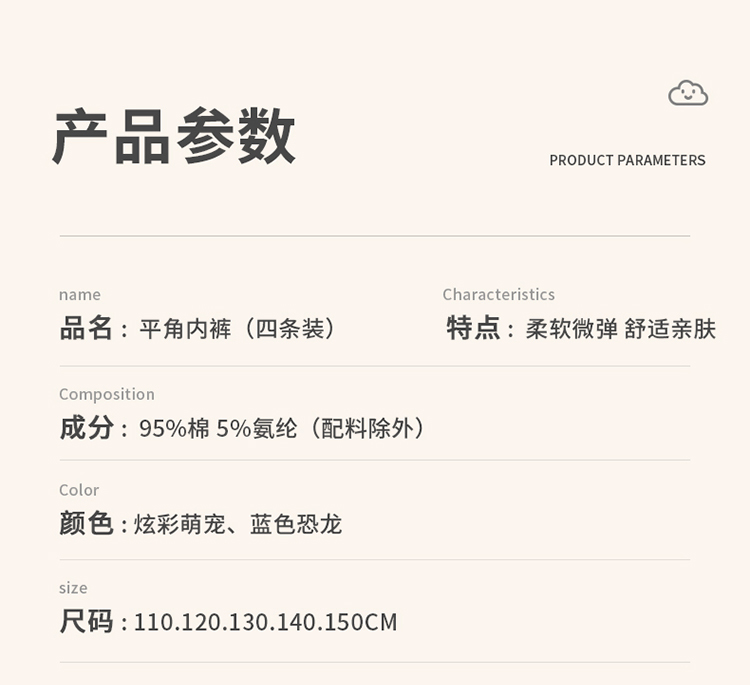 贝贝怡儿童内裤男童短裤中小童宝宝内裤平角内裤(四条装)231P2530