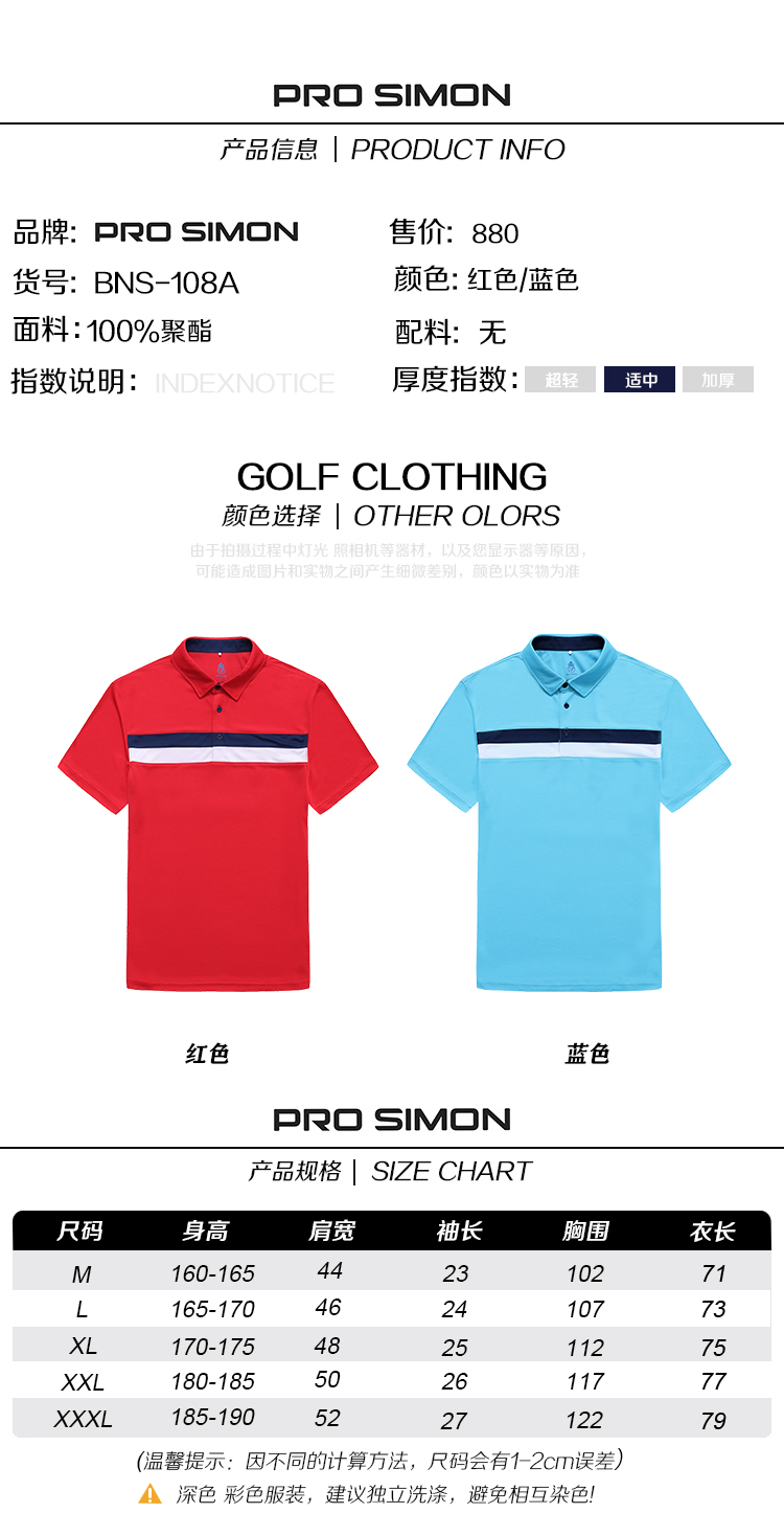 BNS-108A(PROSIMON高尔夫男款春夏短袖拼接款Polo衫)