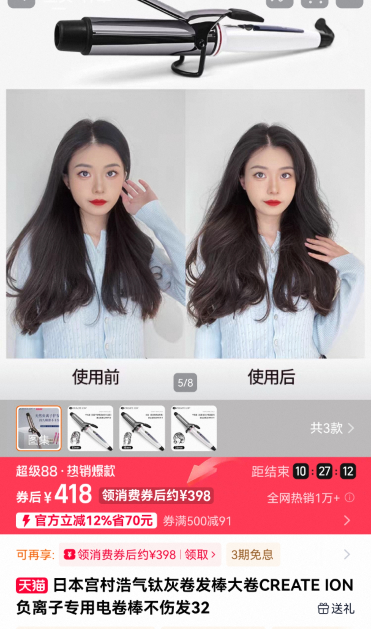 理发店发型师专用宫村浩气电卷发棒持久负离子不伤发