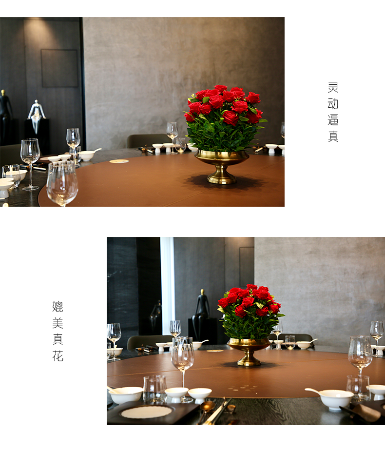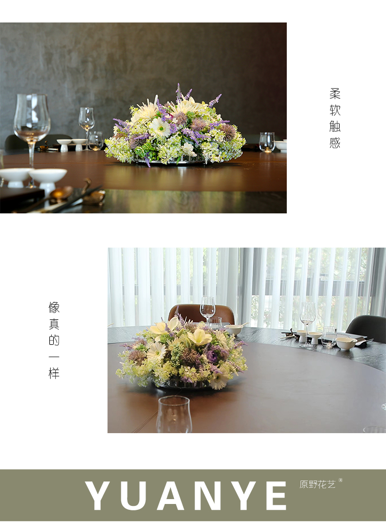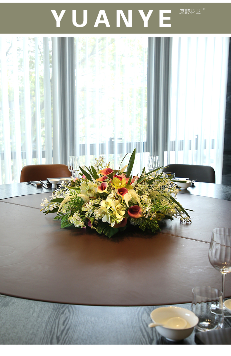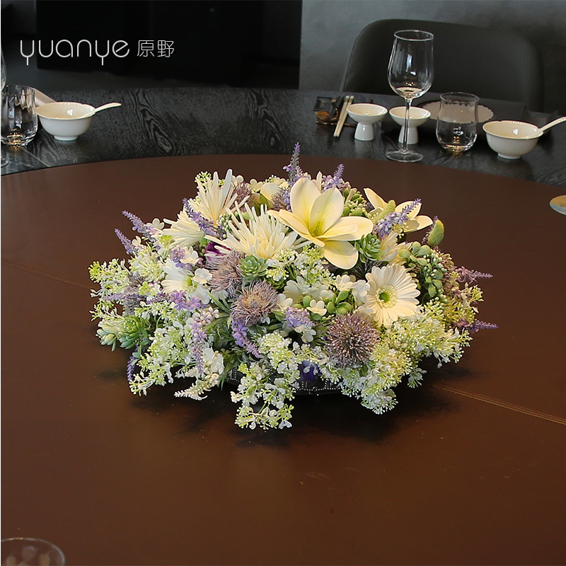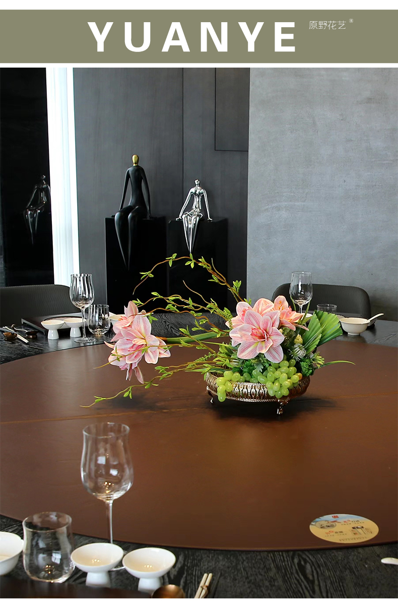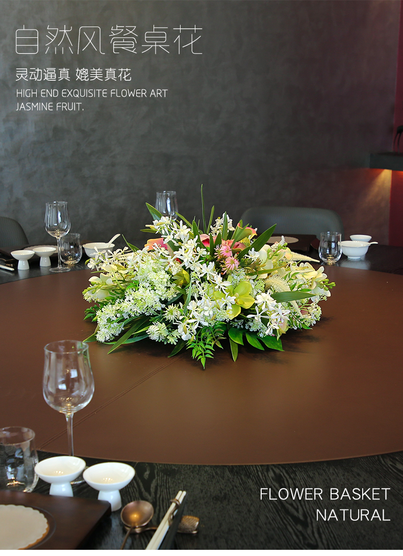 酒店圆桌转盘餐桌花摆花高端仿真花餐厅包厢客厅玄关假花装饰摆件