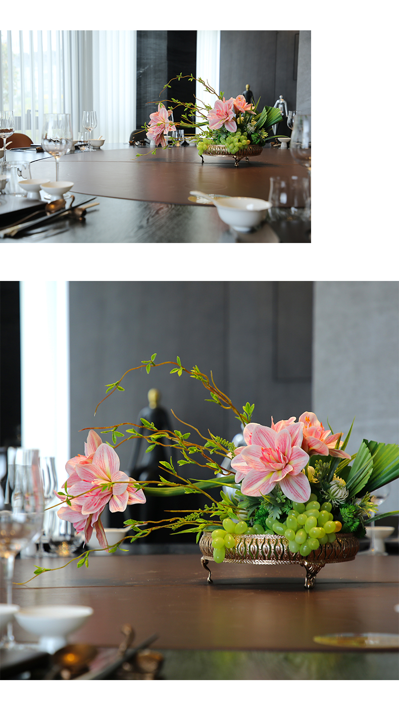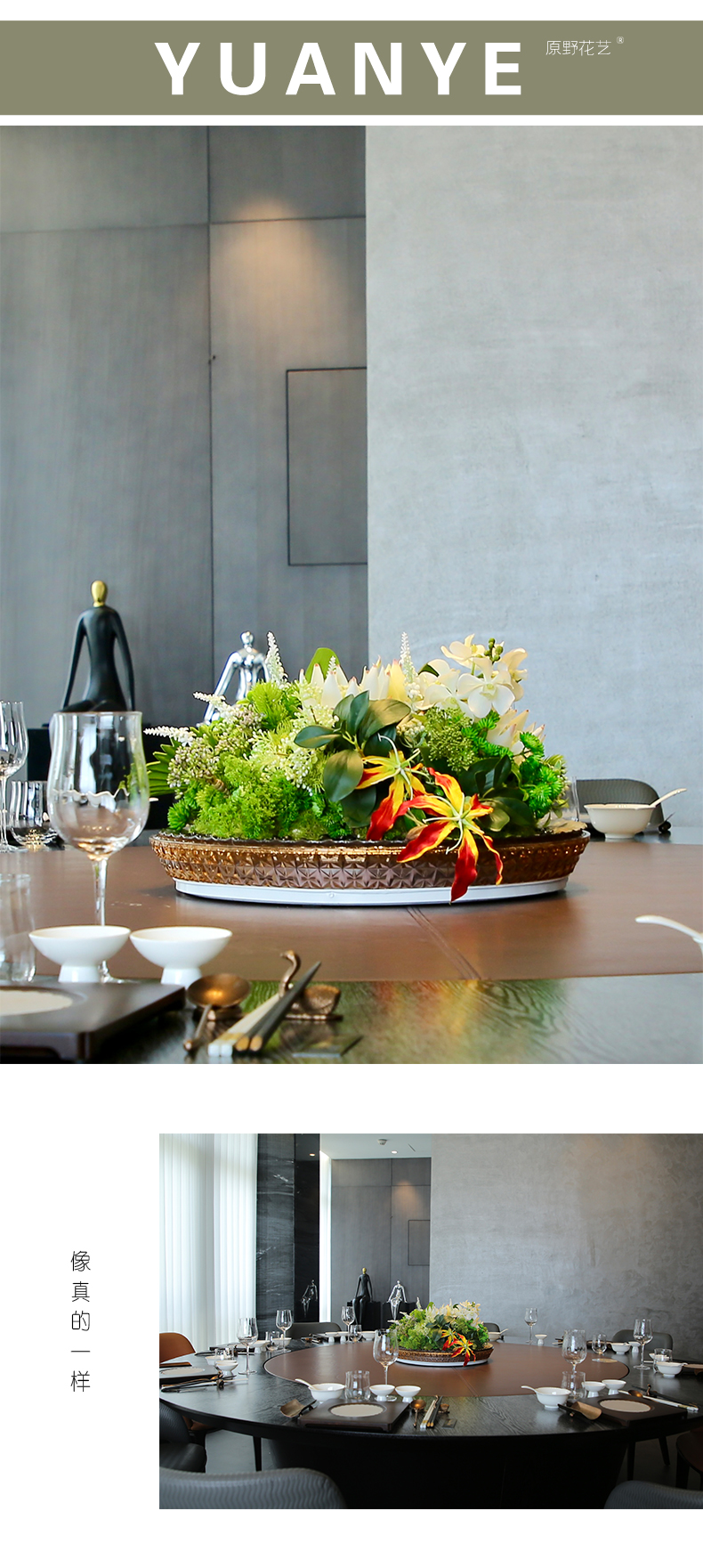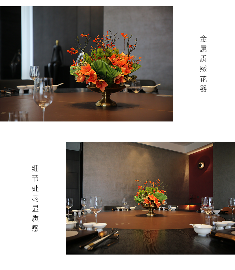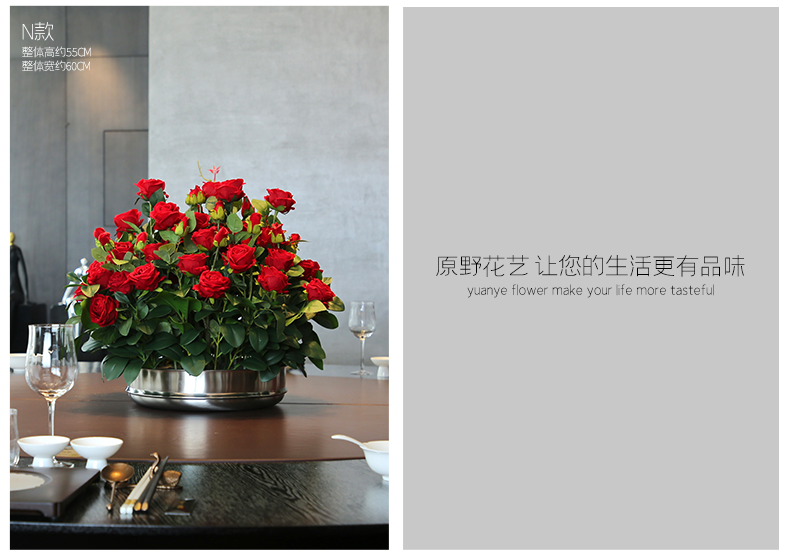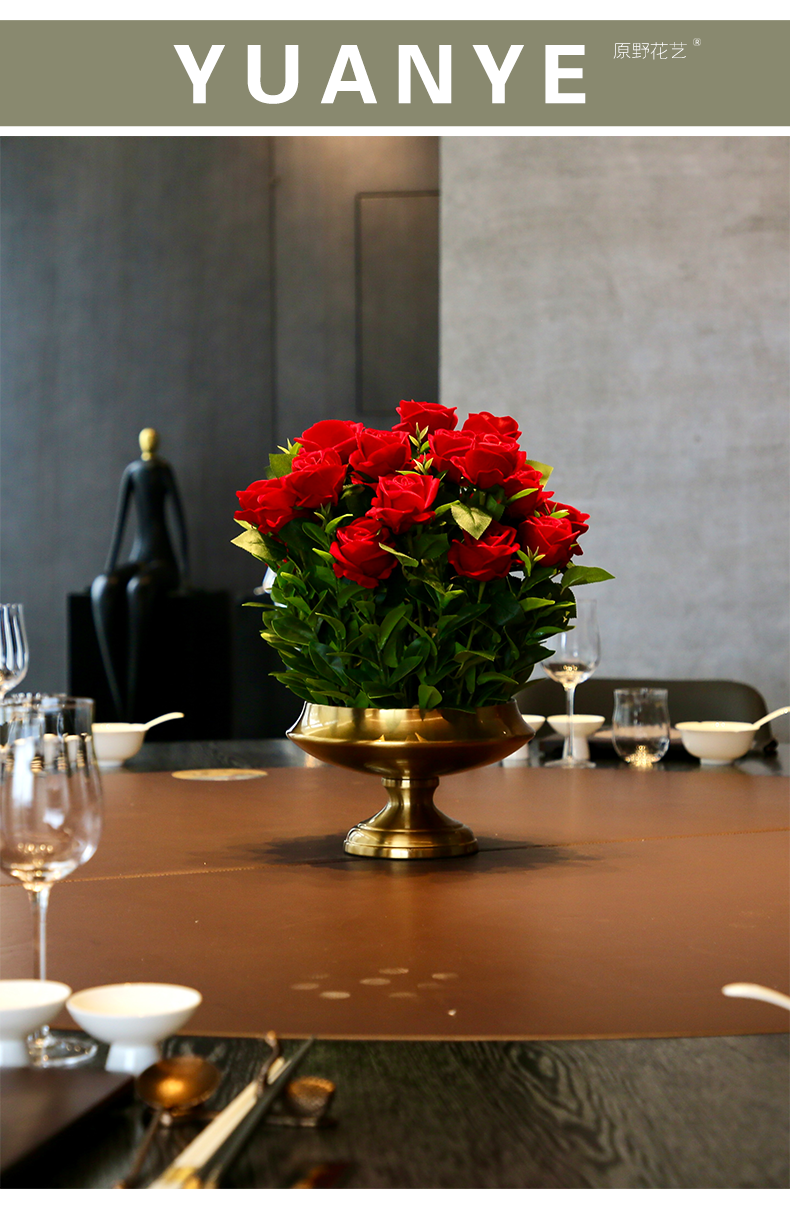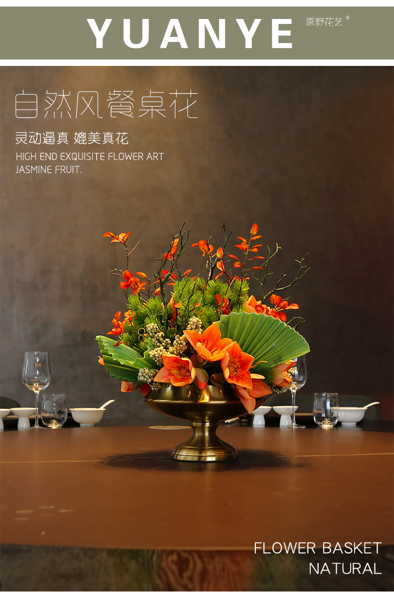 酒店圆桌转盘餐桌花摆花高端仿真花餐厅包厢客厅玄关假花装饰摆件