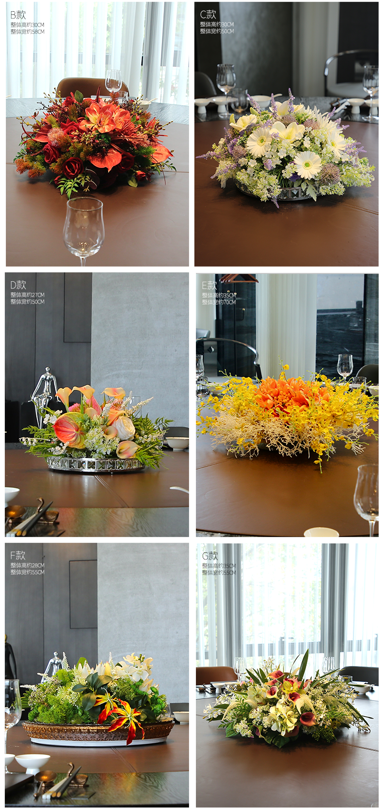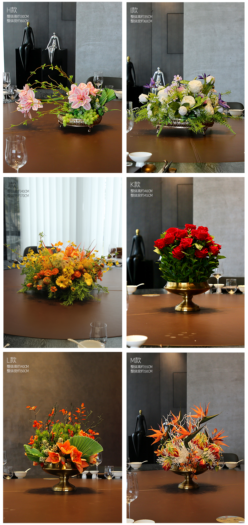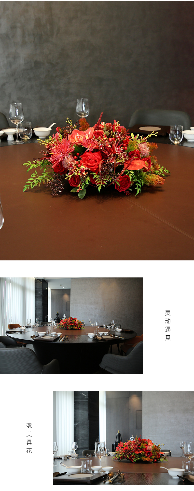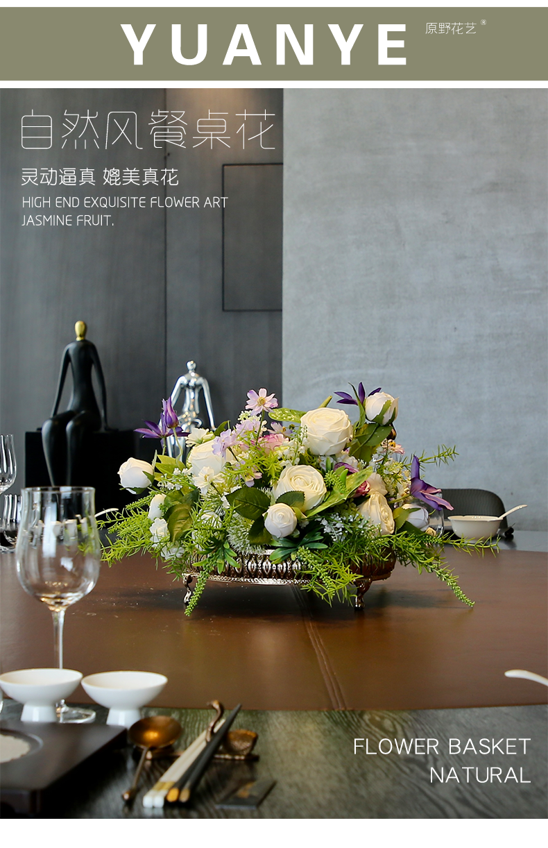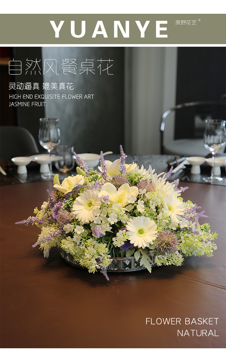 酒店圆桌转盘餐桌花摆花高端仿真花餐厅包厢客厅玄关假花装饰摆件