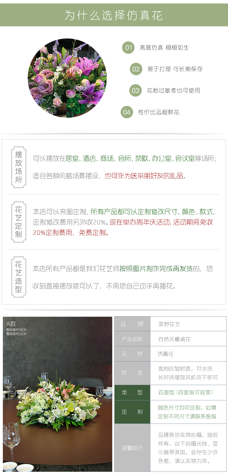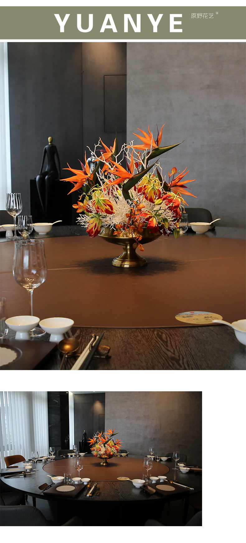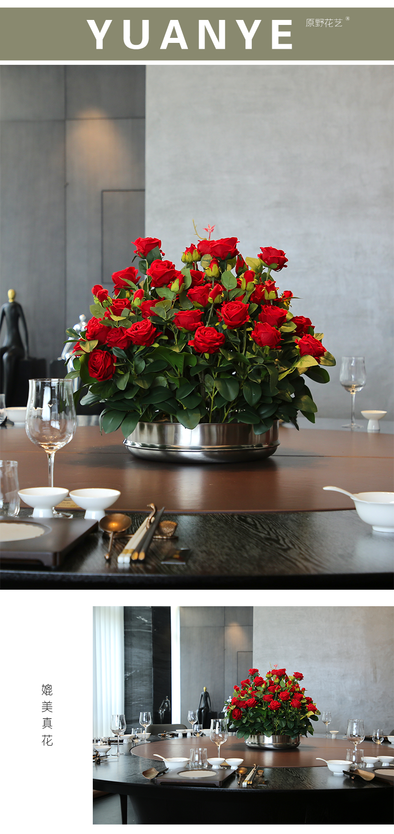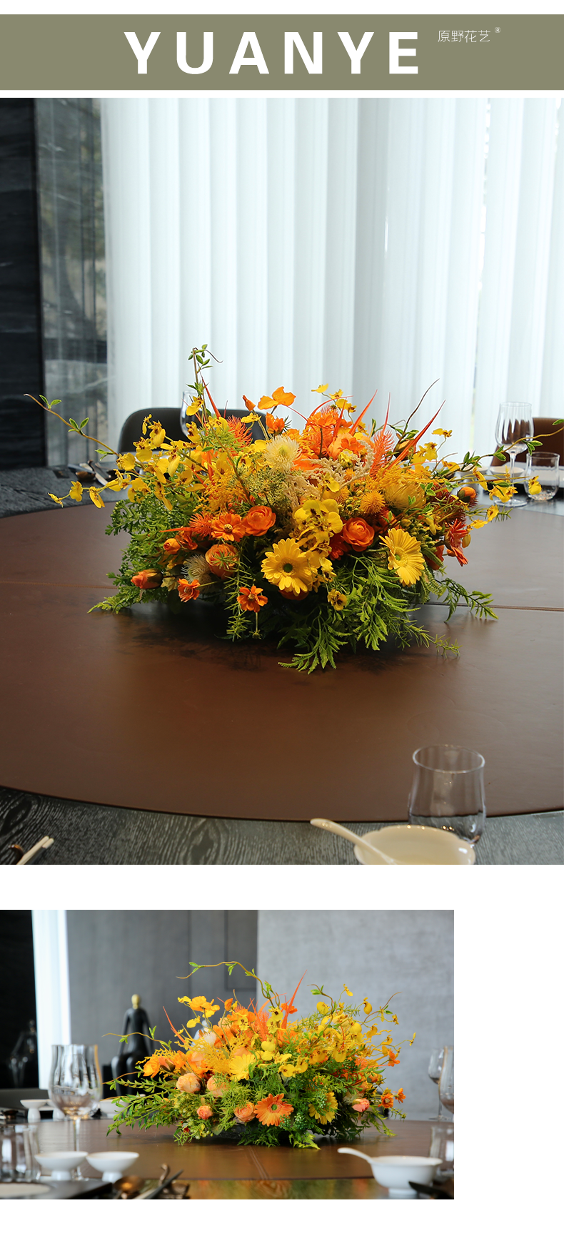 酒店圆桌转盘餐桌花摆花高端仿真花餐厅包厢客厅玄关假花装饰摆件