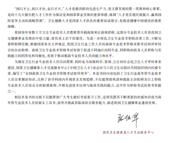 两本书围绕新形势下本专业高级职称人才的培养目标,与临床实践紧密结合,力求反映本学科特点、工作重心、发展趋势及行业新技术与新成果。不仅能指导拟晋升高级职称的应试者进行考前复习,还可以作为广大医务人员日常工作的案头参考书。