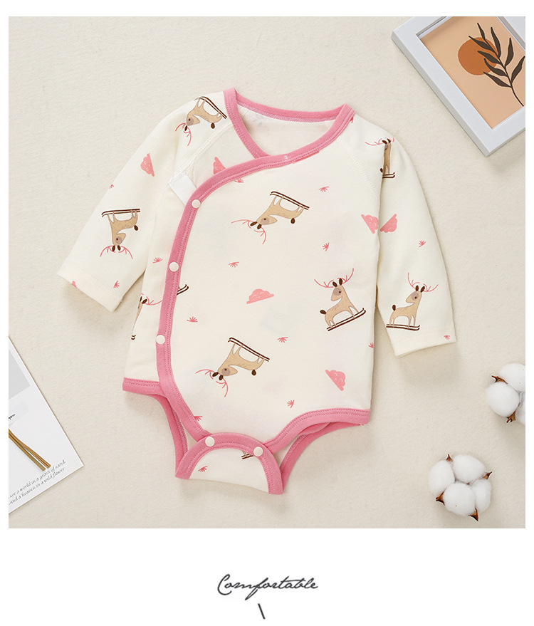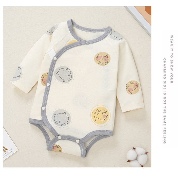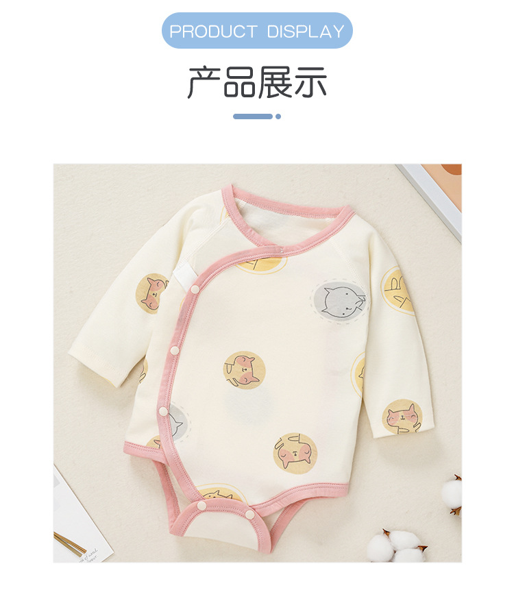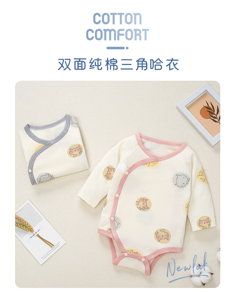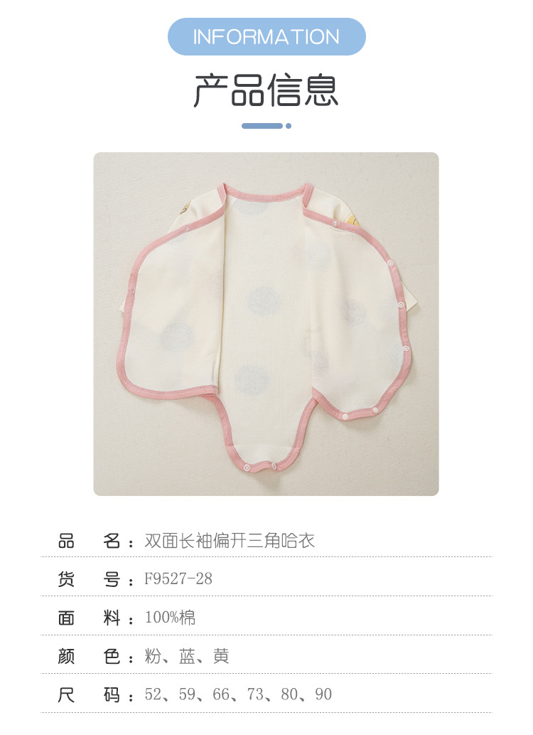【新生儿双层护肚三角包屁衣】春秋纯棉婴儿偏开连体衣初生婴儿哈衣