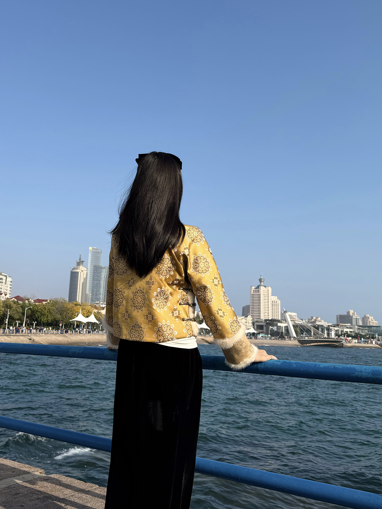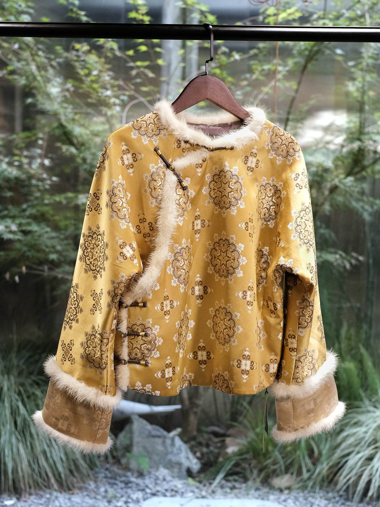 盛唐婧 | 新中式宋锦宝相花拼水貂斜襟小棉服