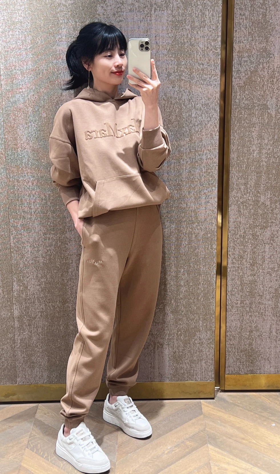 连帽宽松卫衣+松紧腰束脚卫裤,一套上身休闲时尚,绝对是妥妥的懒人福音,尤其是不知道穿什么的时候,套上就能出门了