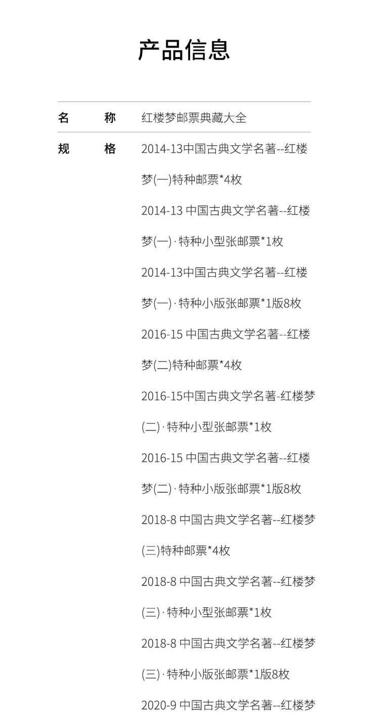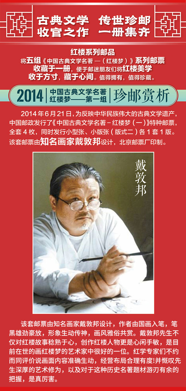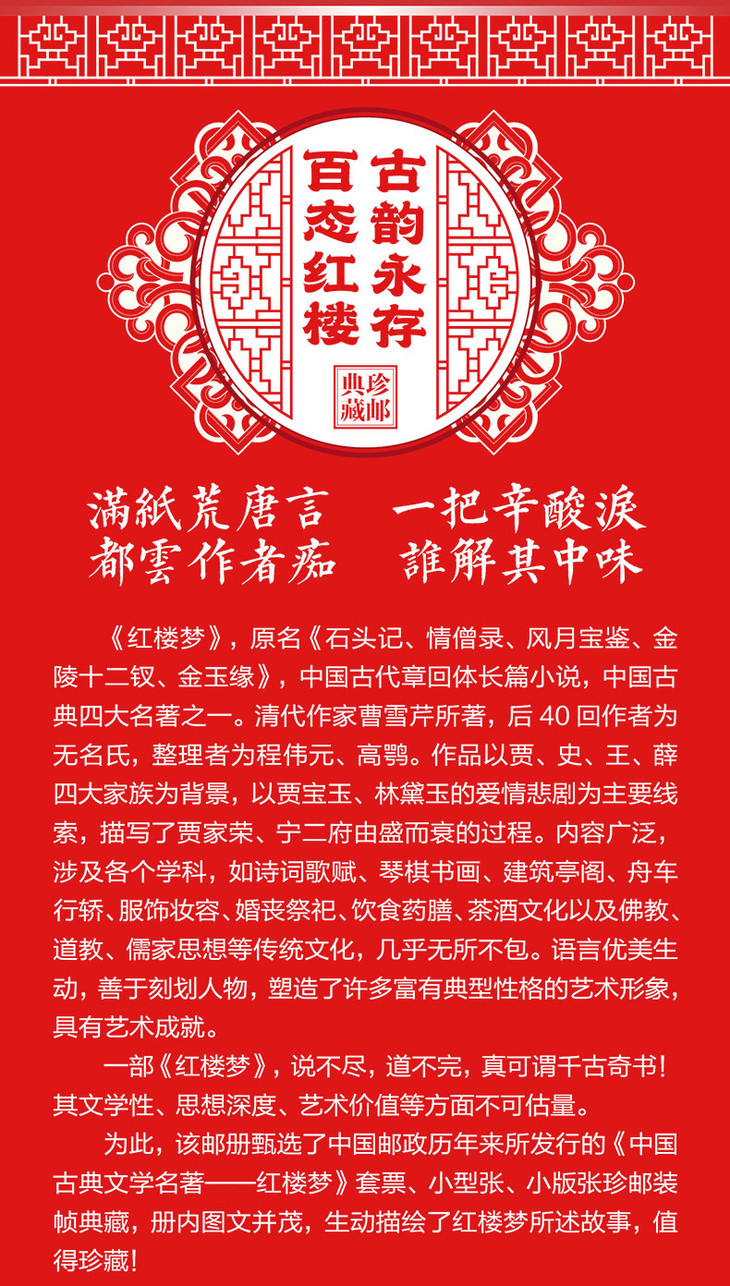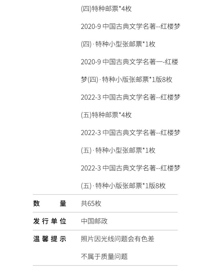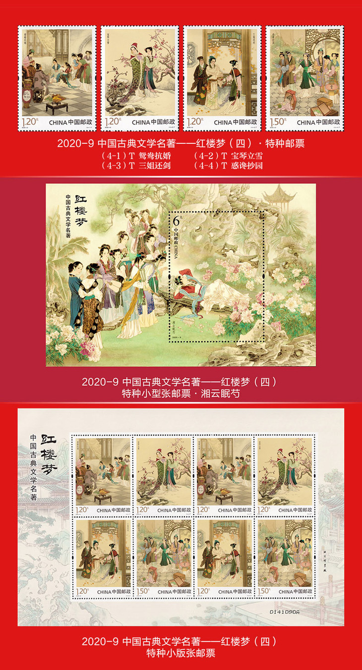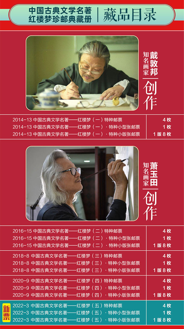 《红楼梦》 邮票典藏大全 系列邮票1-5全收录 65枚邮票 含套票、小型张、小版张3种类型