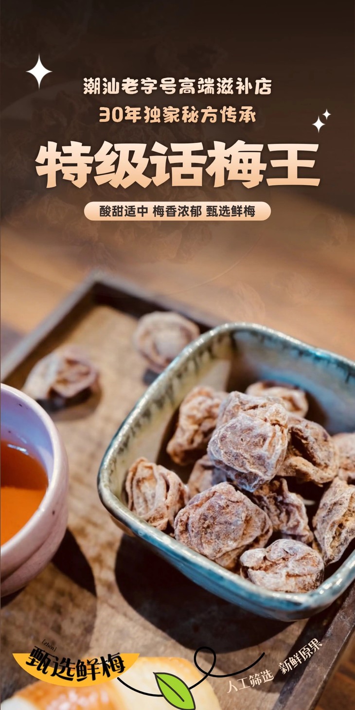 喜欢吃话梅的,一定一定要试试这颗巨大的特级话梅王,一点不输贵贵的幺凤哦!出自潮汕老牌高端滋补店,已经有30年了,因为工艺严苛、原料稀缺,一年才几批,尝过便知何为真正的梅中王者,错过可就要等来年了!