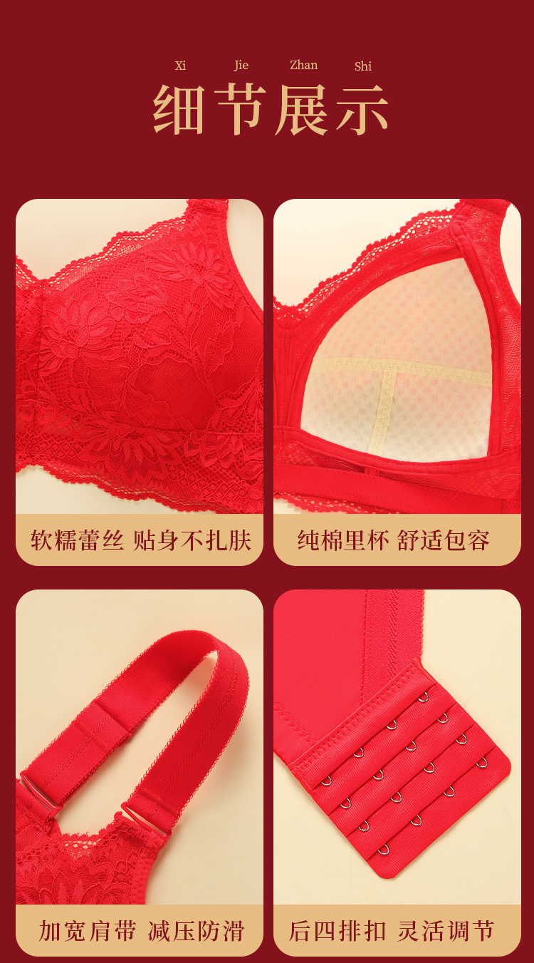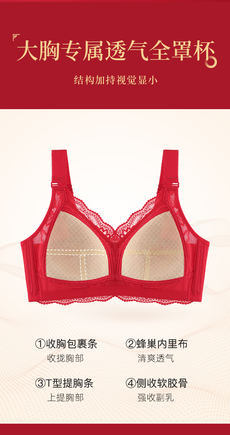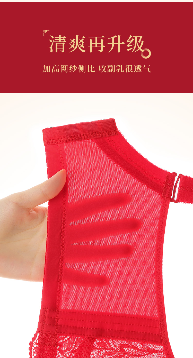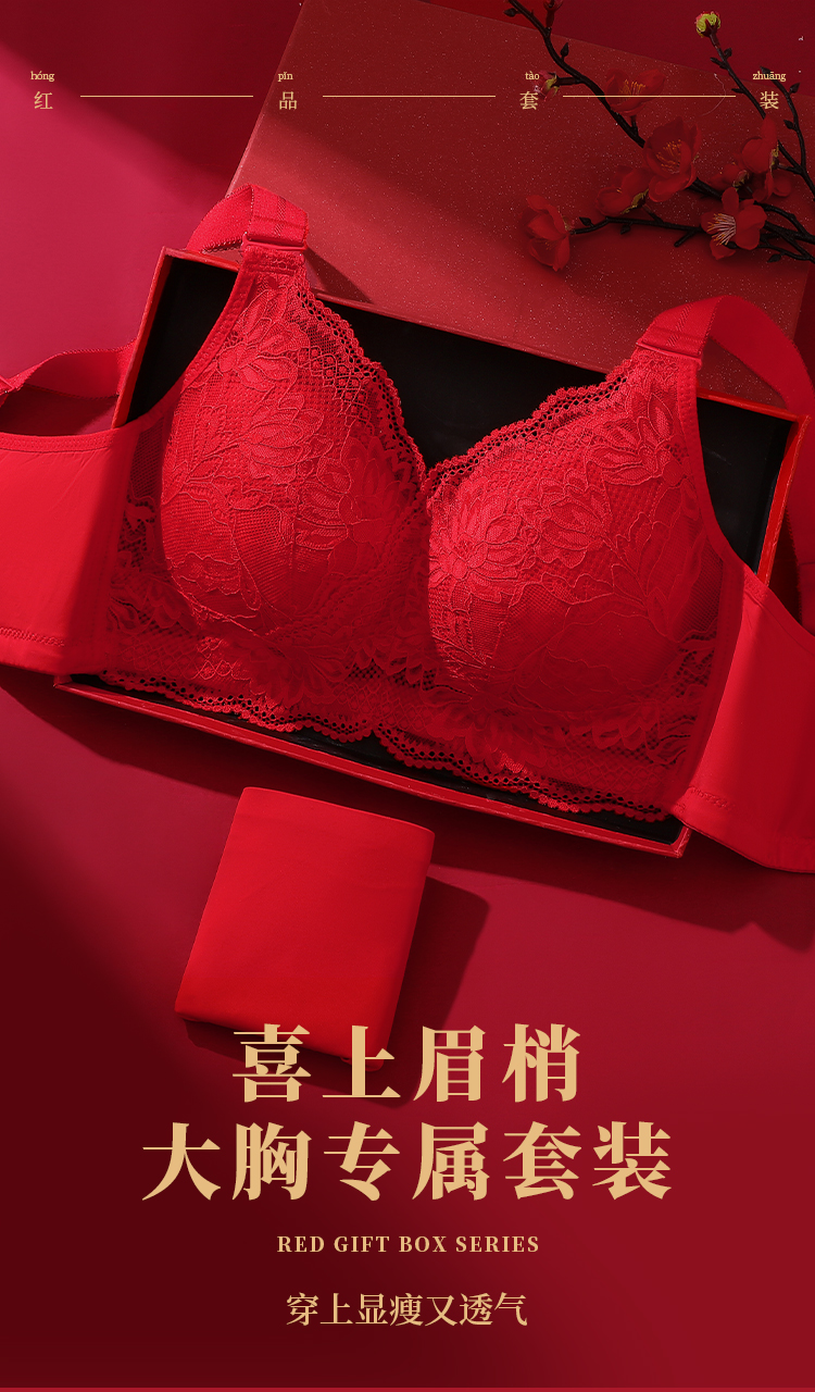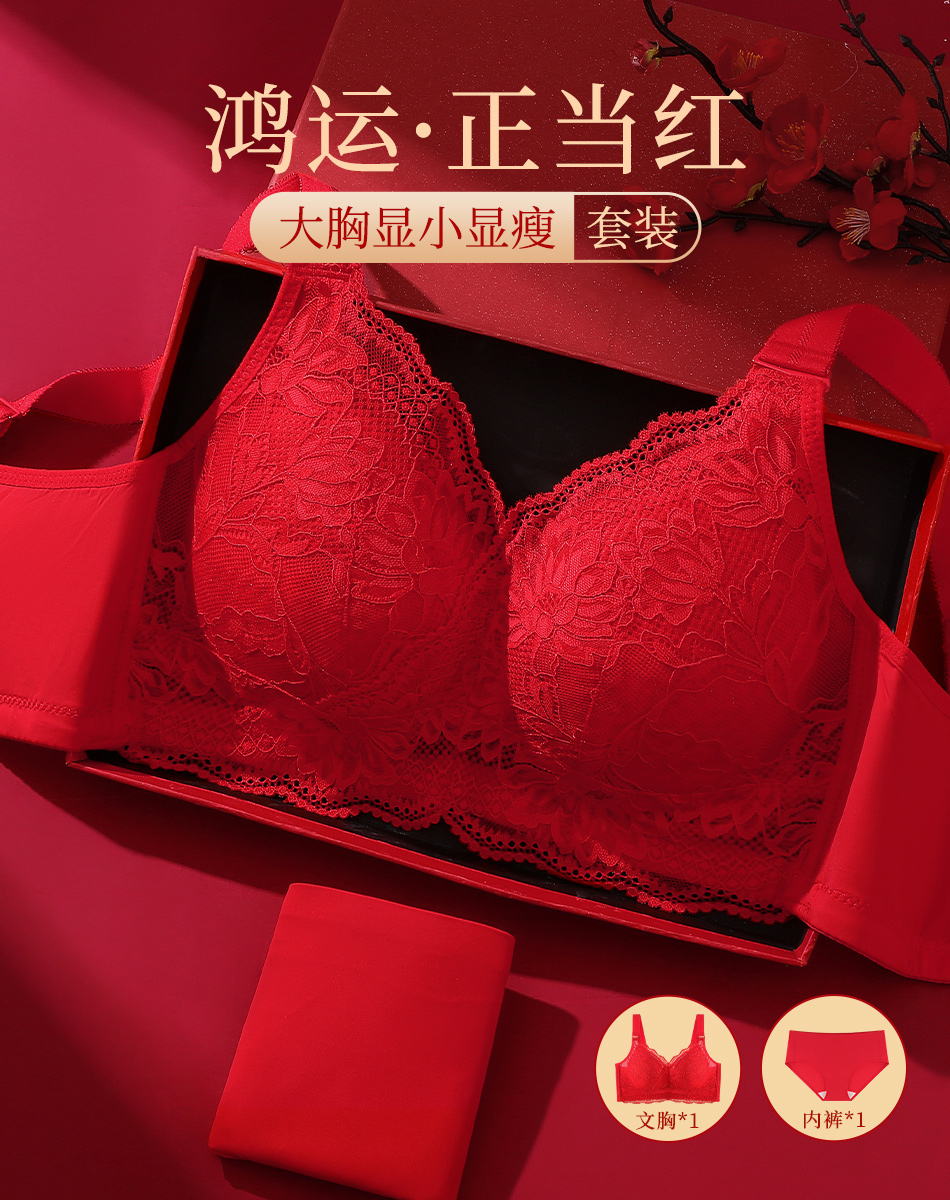 蛇年本命年新婚大红色内衣文胸套装性感蕾丝大胸显瘦显小收副乳子墨浮华套红