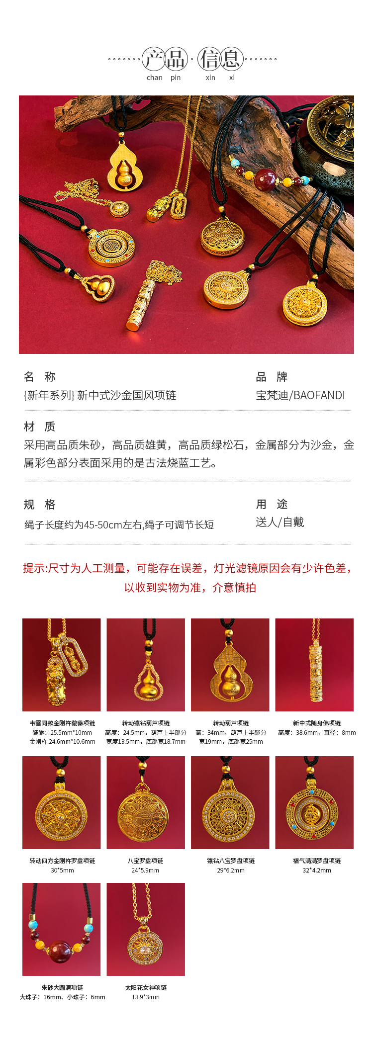 【古法传承】BAOFANDI宝梵迪新年新中式国风沙金系列项链