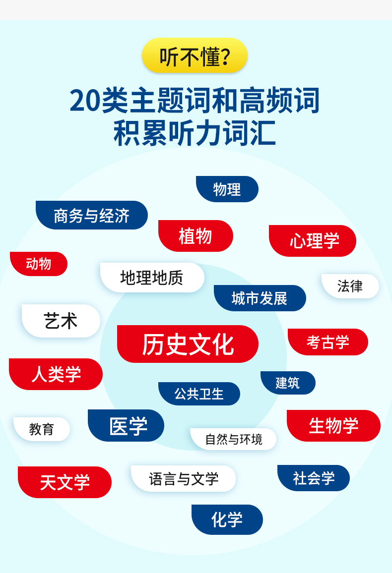 4. 总结20类托福听力常考主题词,并配相应的巩固练习,学练结合,词汇掌握得更牢固;