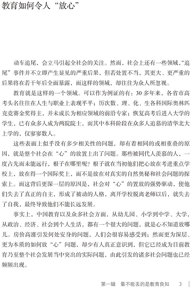 本书围绕教育常识,从教育公平、教育底线、教育良知、教育责任、乡村教育、教育安全等六个方面,精选了教育名家储朝晖近十年在各主流教育媒体发表的教育观察、思考与锐评,既叩问教育现状,针砭时弊,又富有建言,提出了可操作性的建议。本书对于警醒教育从业者的教育良知,促进教育的良性发展,具有重要意义。