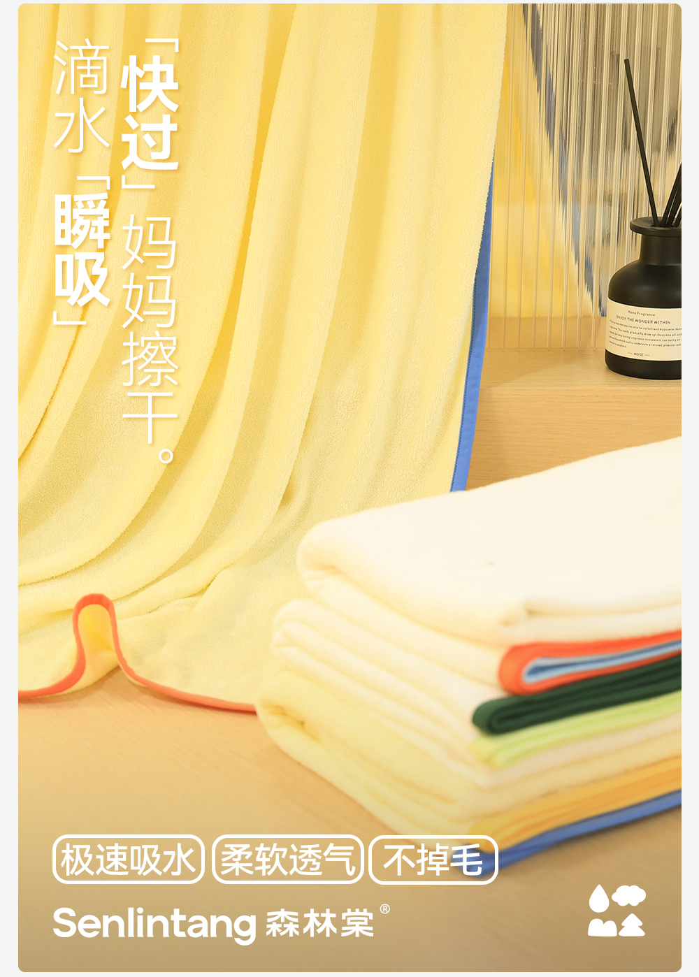 [屁侠推荐]滴水瞬吸大浴巾 森林棠柔软亲肤竹纤维浴巾透气不易掉毛家用洗澡大浴巾24161407