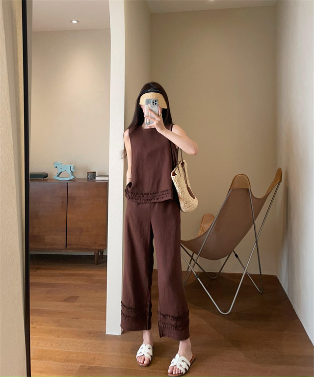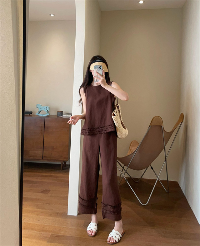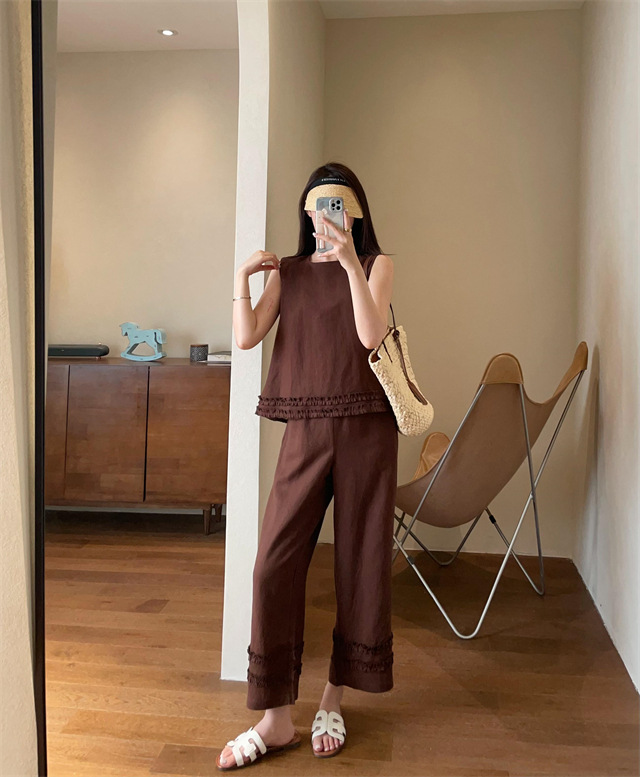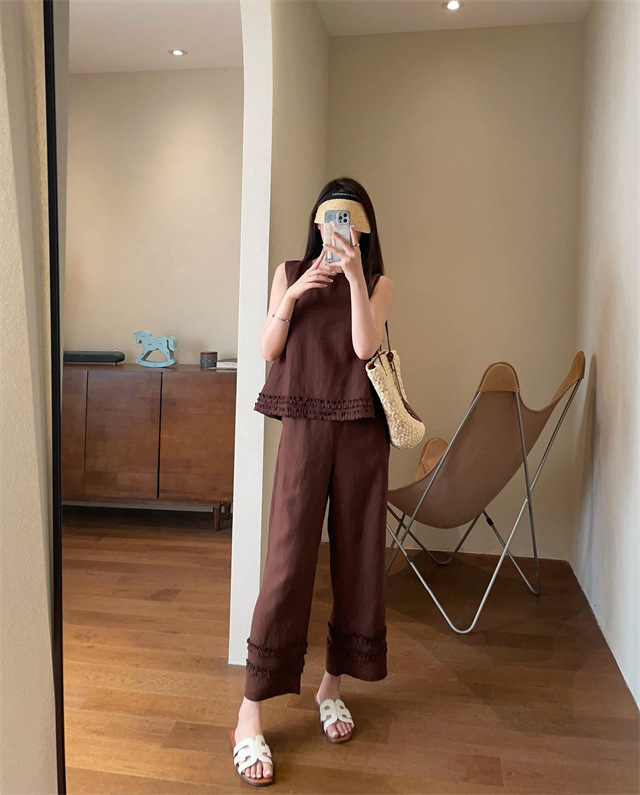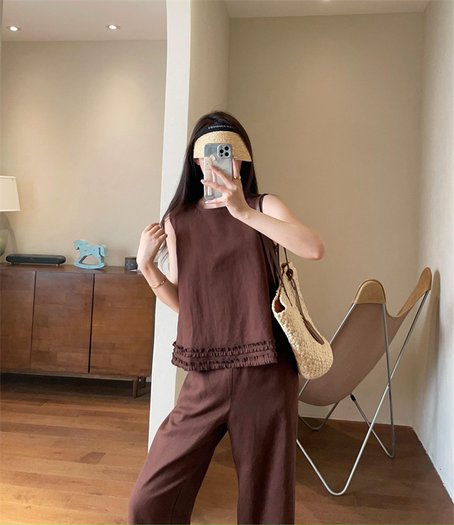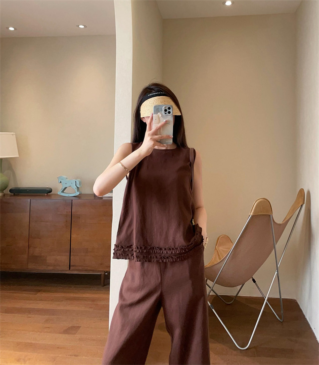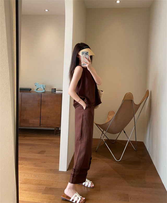 同时保留了亚麻天然的筋骨感,让阔腿裤更有形,