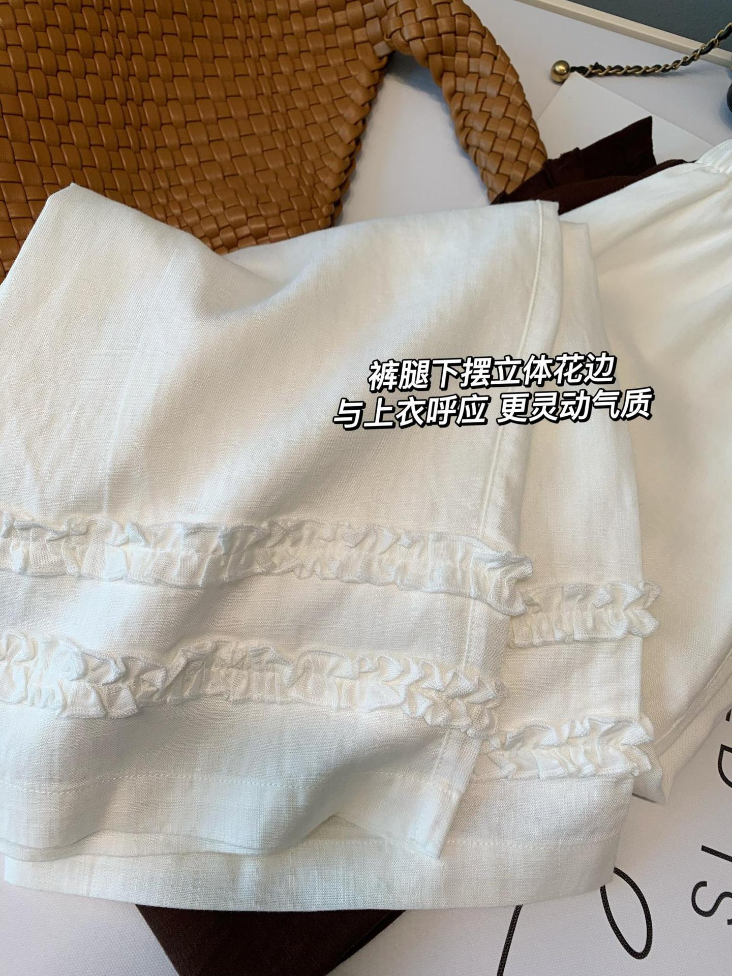 裤脚呼应,同样加入木耳边装饰,和上衣下摆完美呼应,