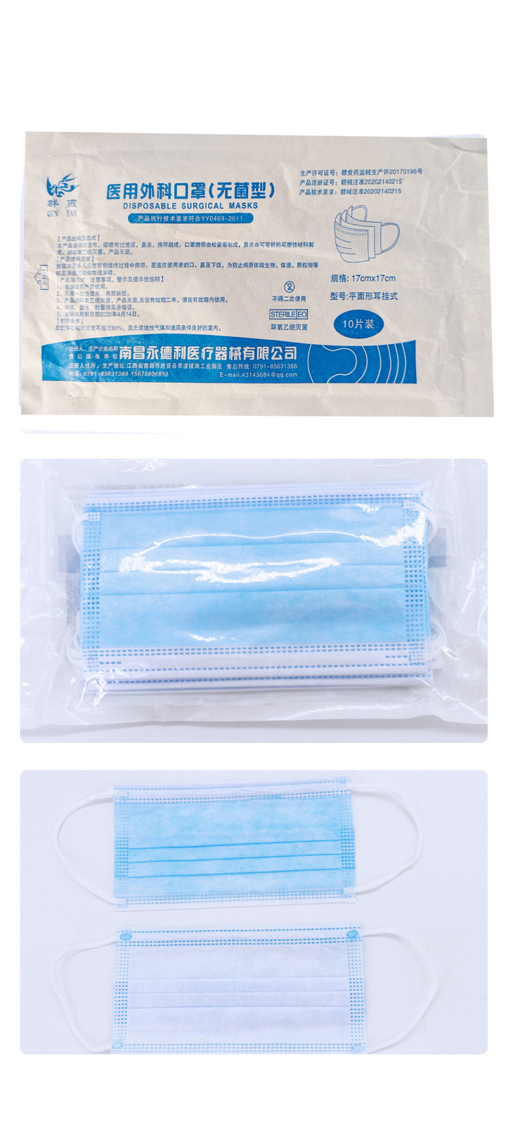 海南分院——群燕成人医用外科口罩 三层防护 10片/包