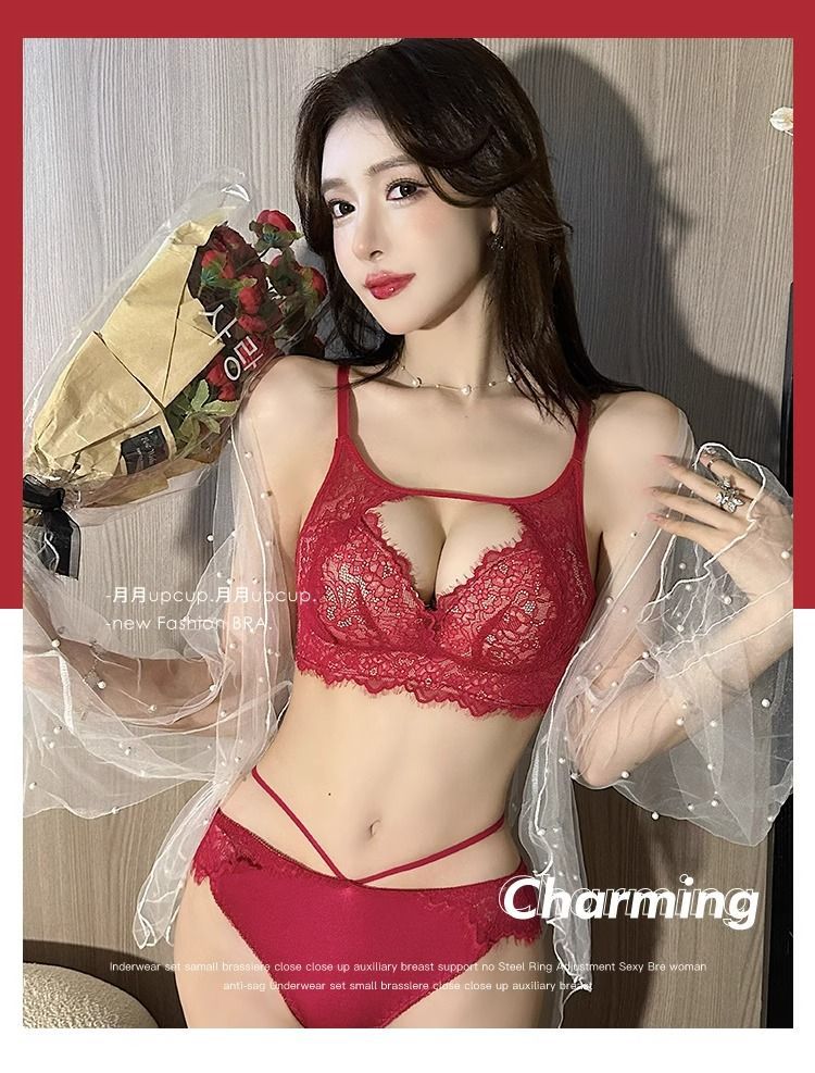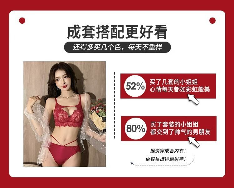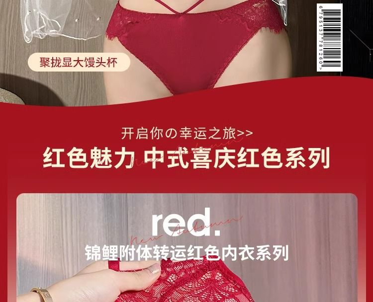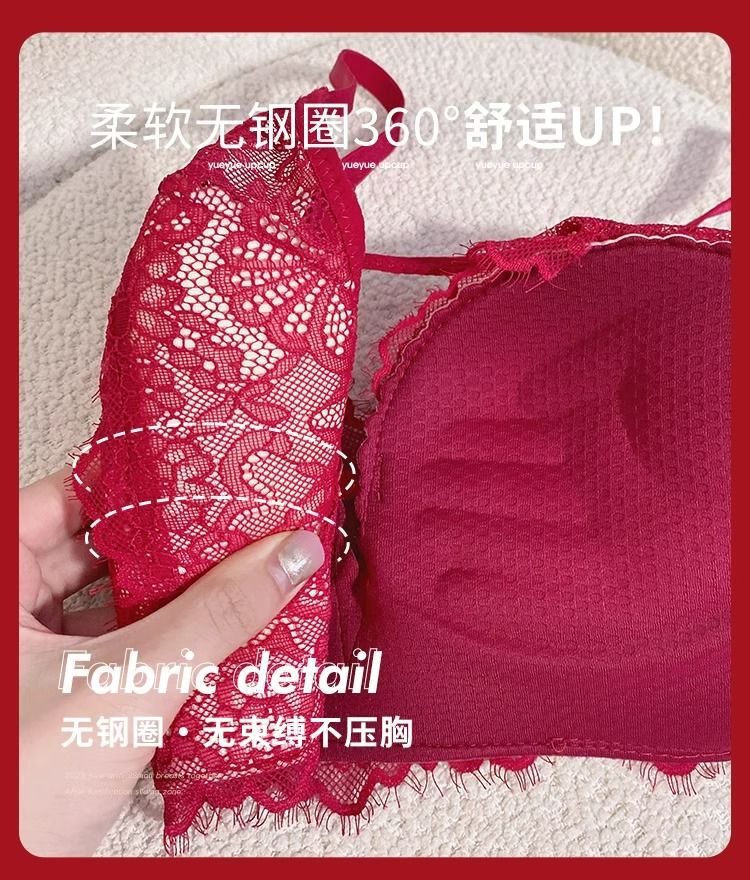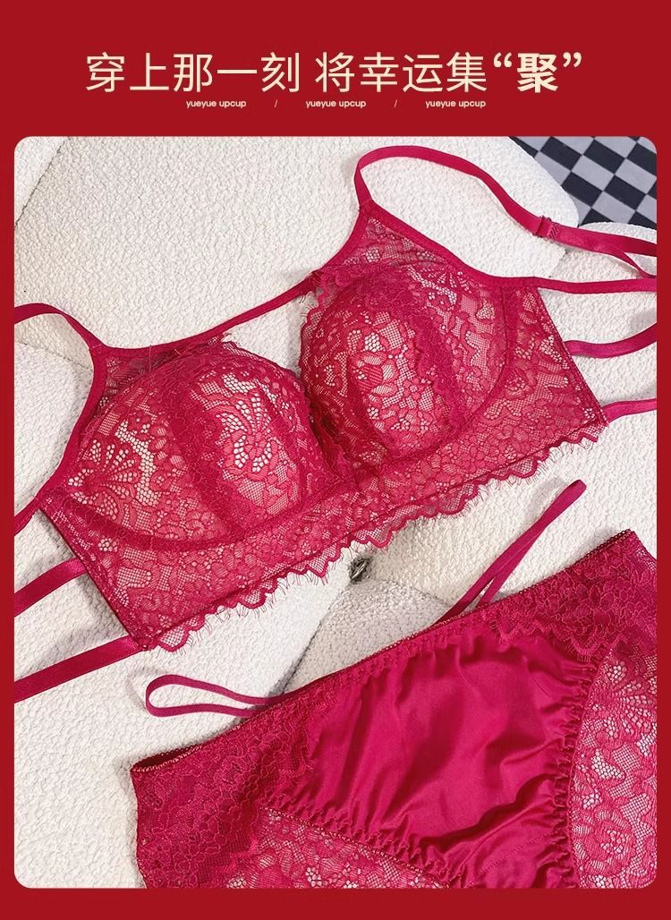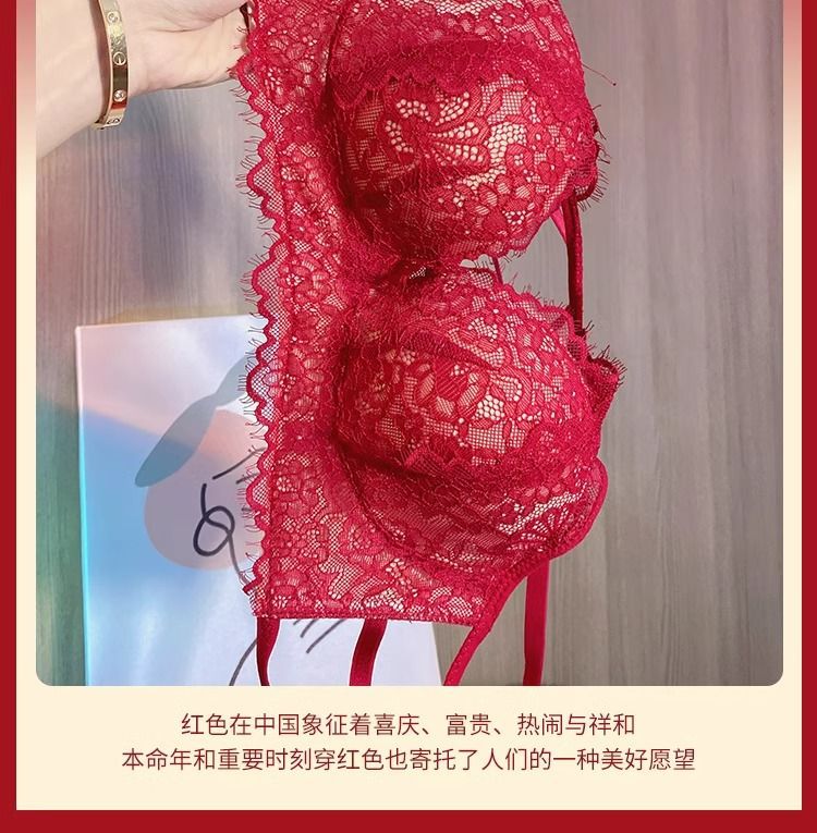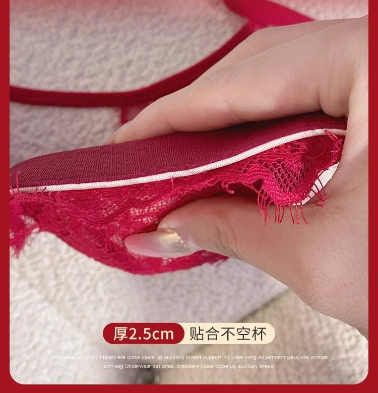 【好运“聚”备❗️性感蕾丝内衣套装】怎么搭都上镜,穿衣显胸更好看!新款本命年红色小胸聚拢上托显大结婚喜庆文胸罩新年年货礼盒