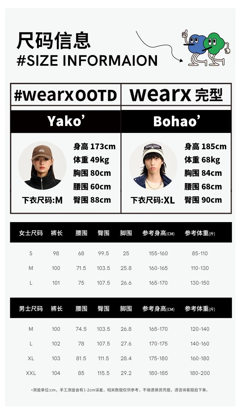 男:M(165-170cm,120-140斤)/L(170-175cm,140-160斤)/XL(175-180cm,160-180斤)/XXL(180-185cm,180-200斤)