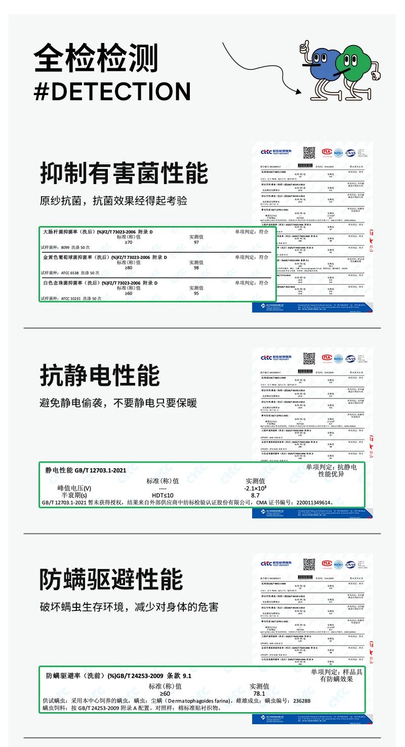 还采用原生超细纤维物理抗螨/抑菌技术,拒绝使用化学成分,破坏螨虫与细菌的生存环境,切断生命循环链路,减少对身体的危害