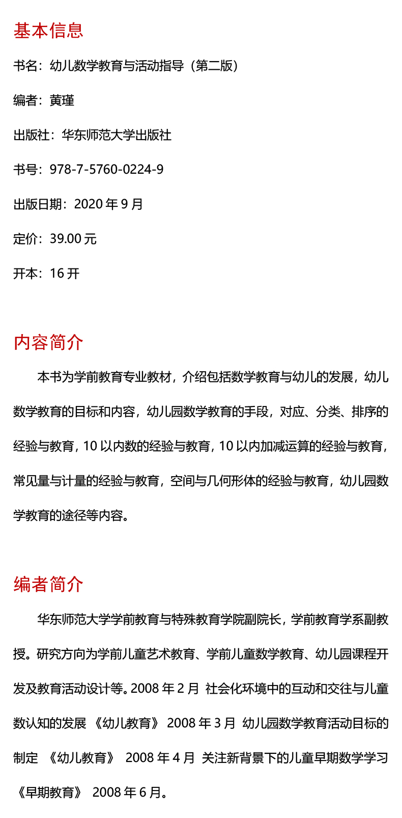 幼儿数学教育与活动指导 第二版 新标准 学前教育专业系列教材 正版 华东师范大学出版社