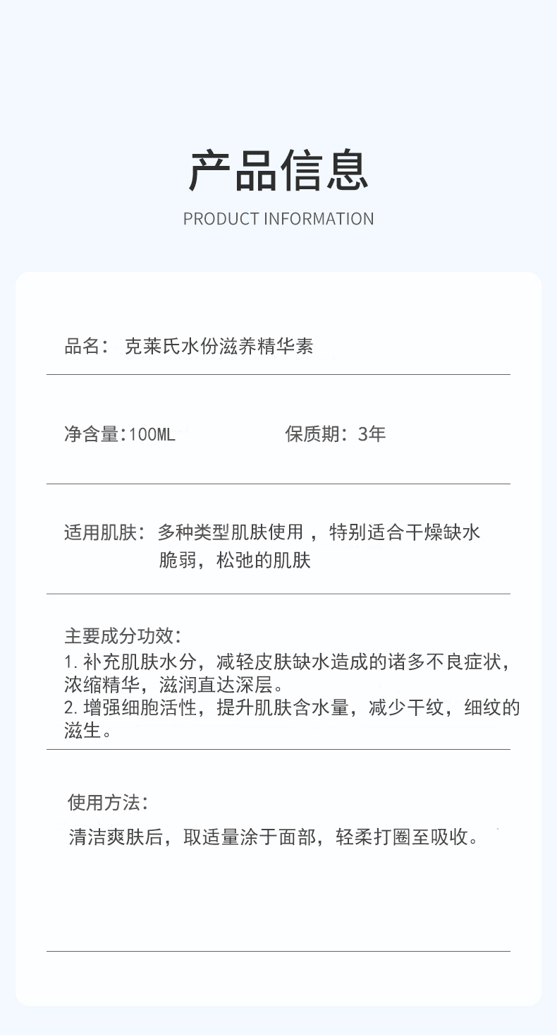 克莱氏水分滋润精华液100ml精华素补水保湿
