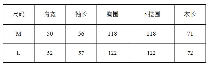 -Size/尺码手工测量可能存在1-3cm误差,属于正常范围,不作为退换证(单位:cm)