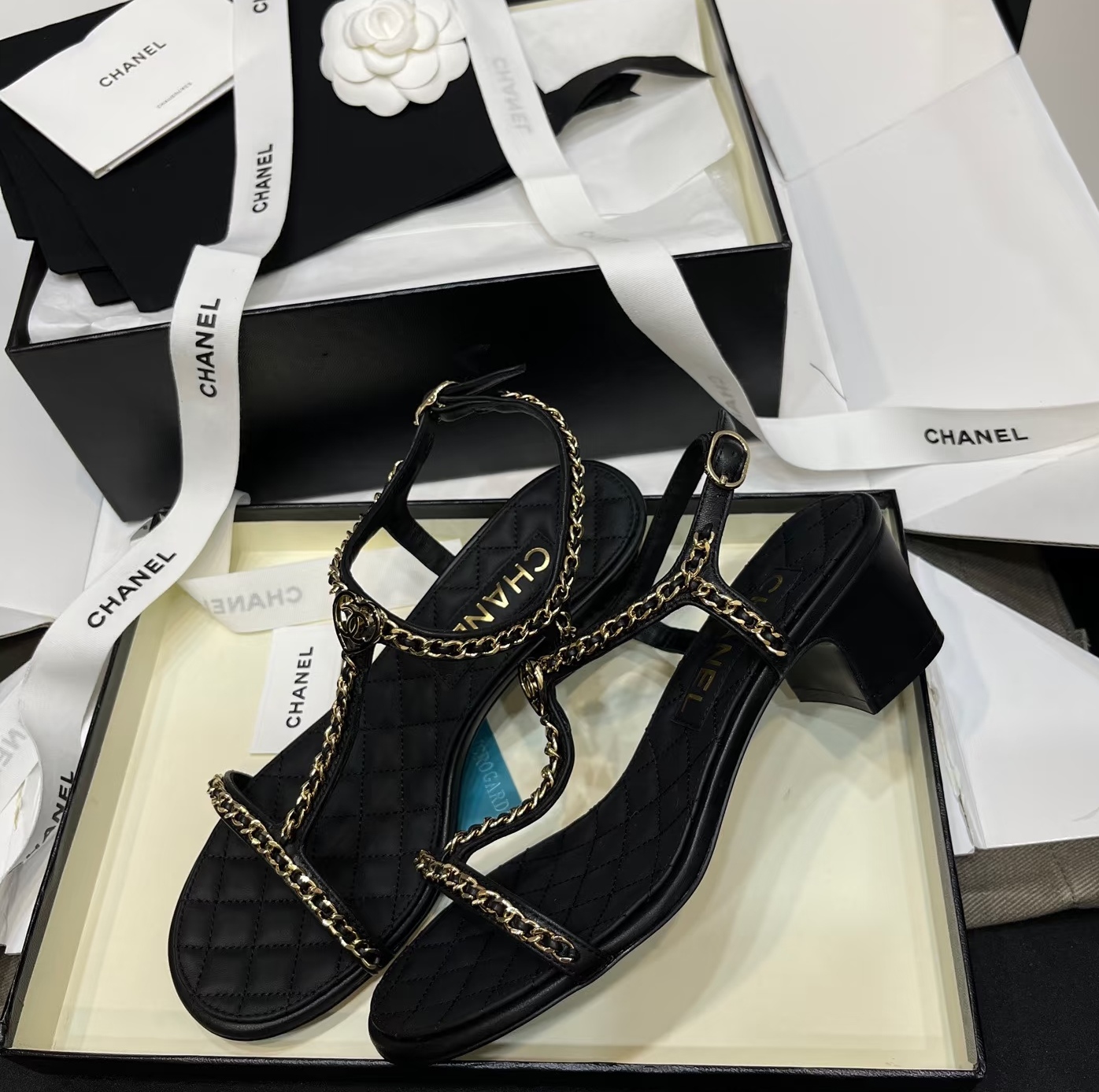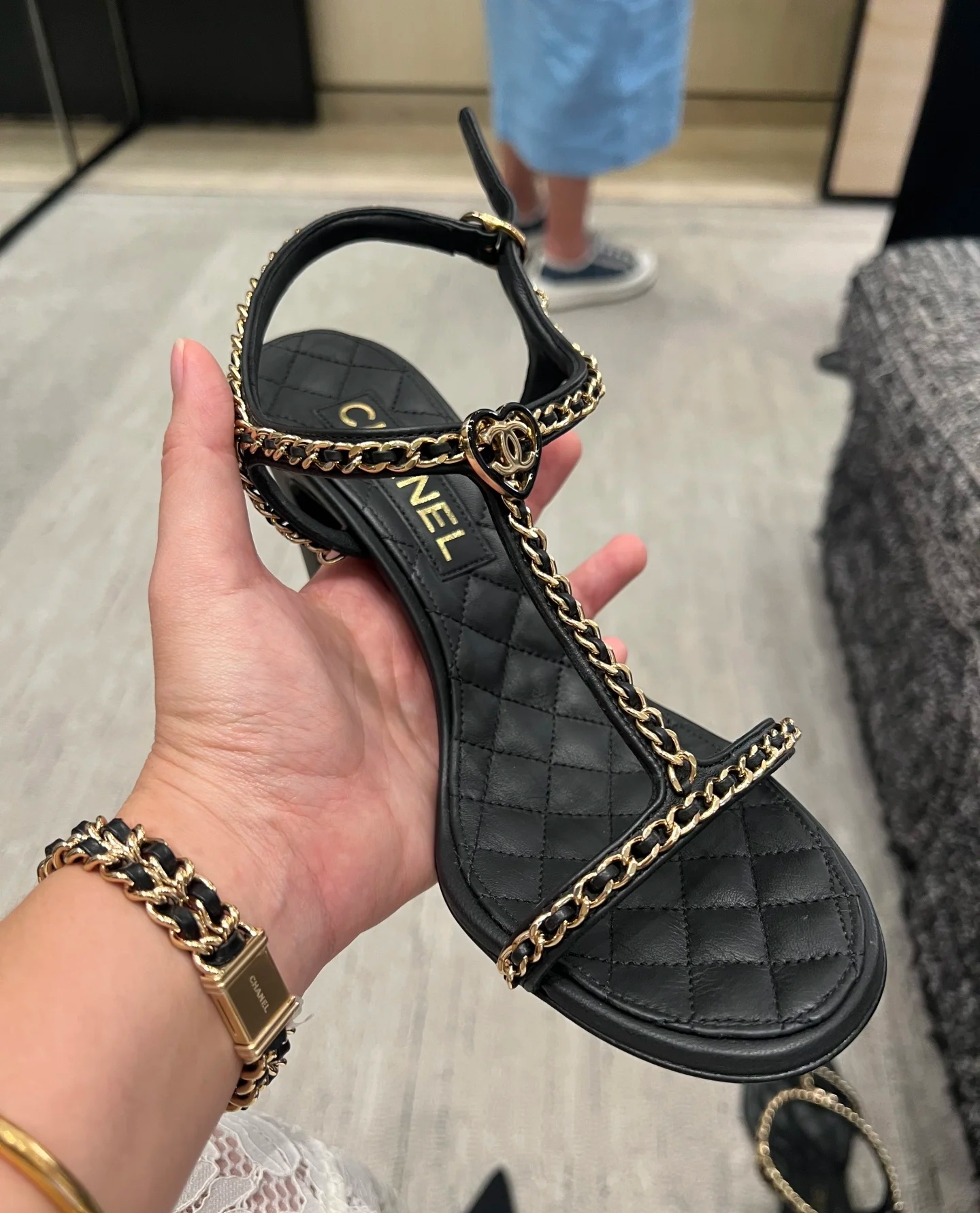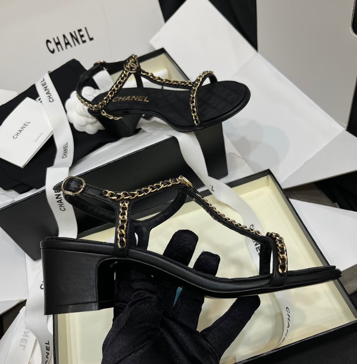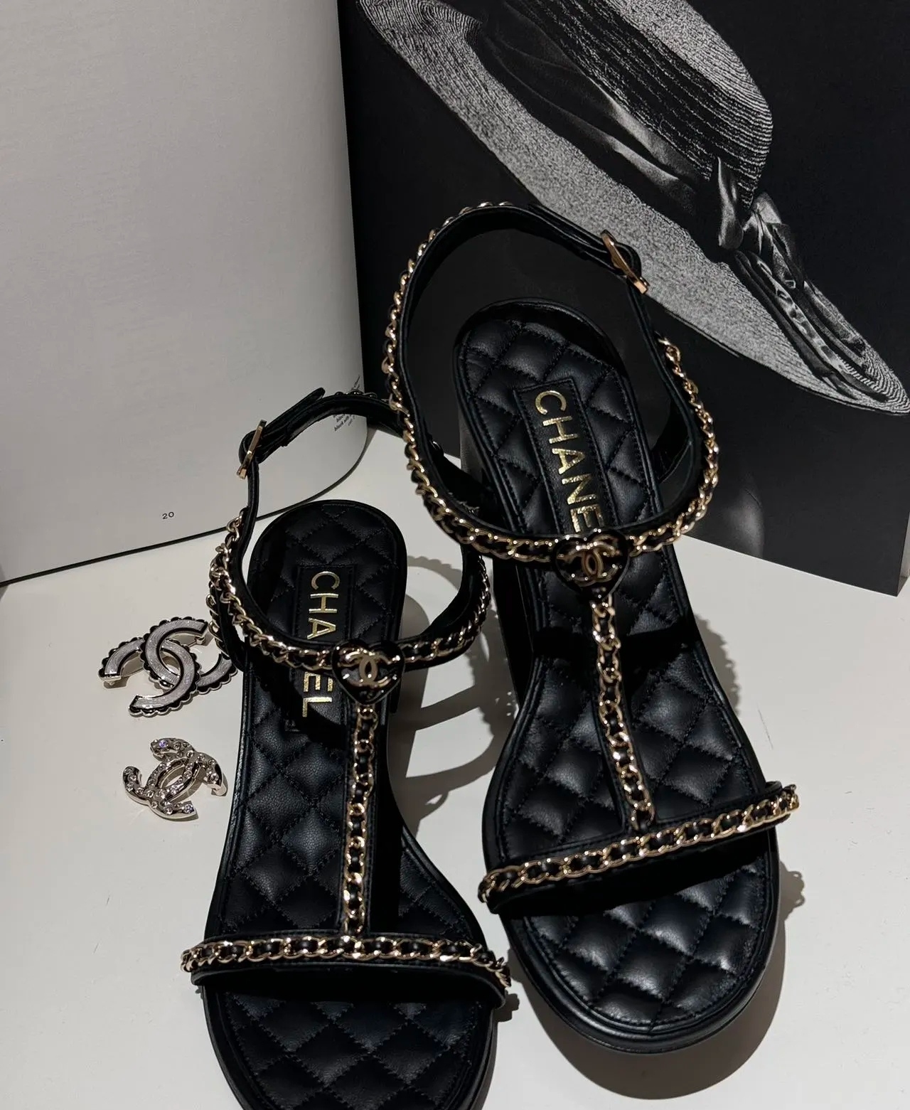 小香新款链条凉鞋,搭什么都好看,大气时髦气质,也复古小性感,工字型链条感解放双脚,同时也显脚面纤细。小方跟更稳。