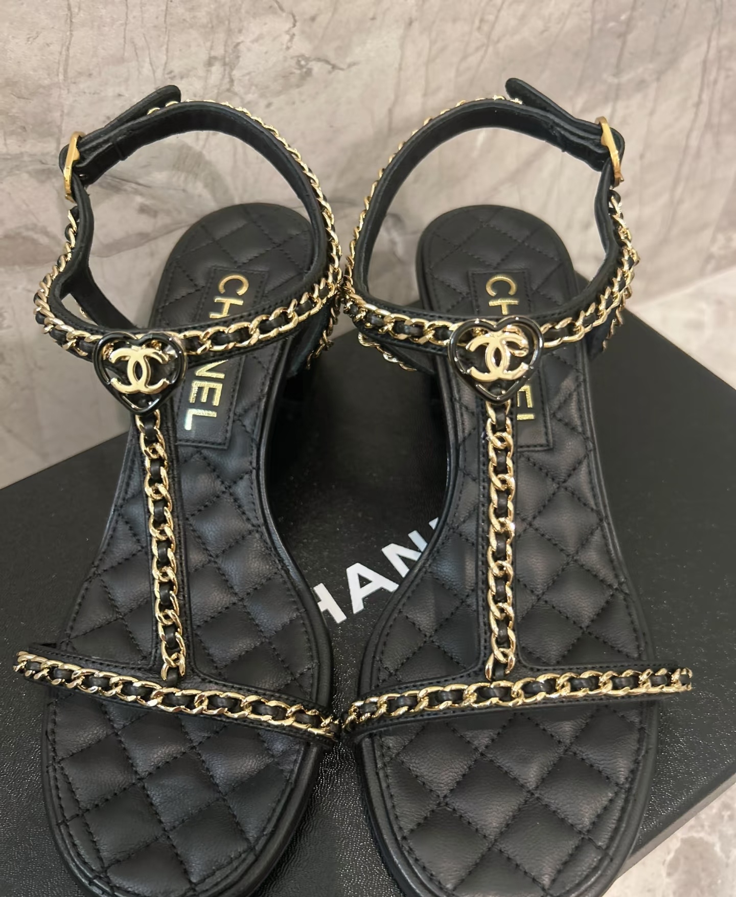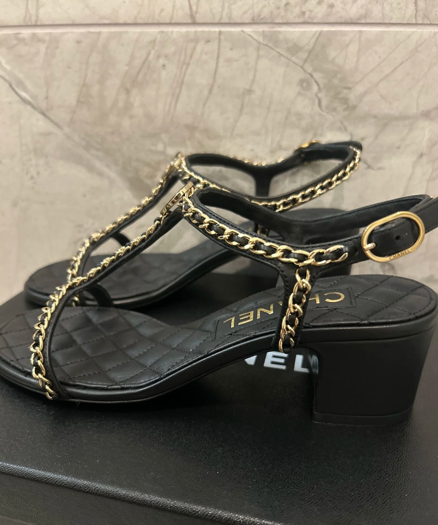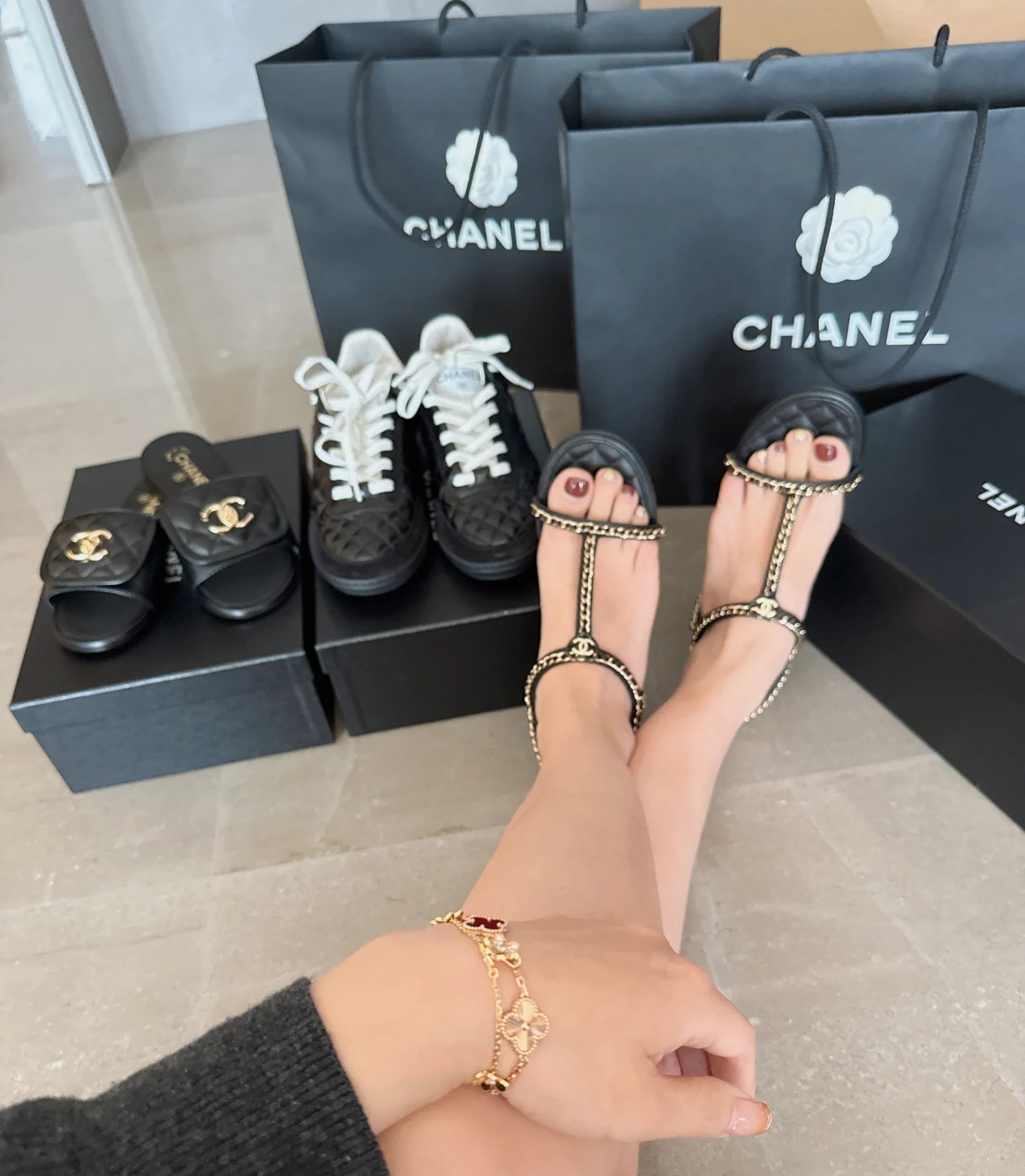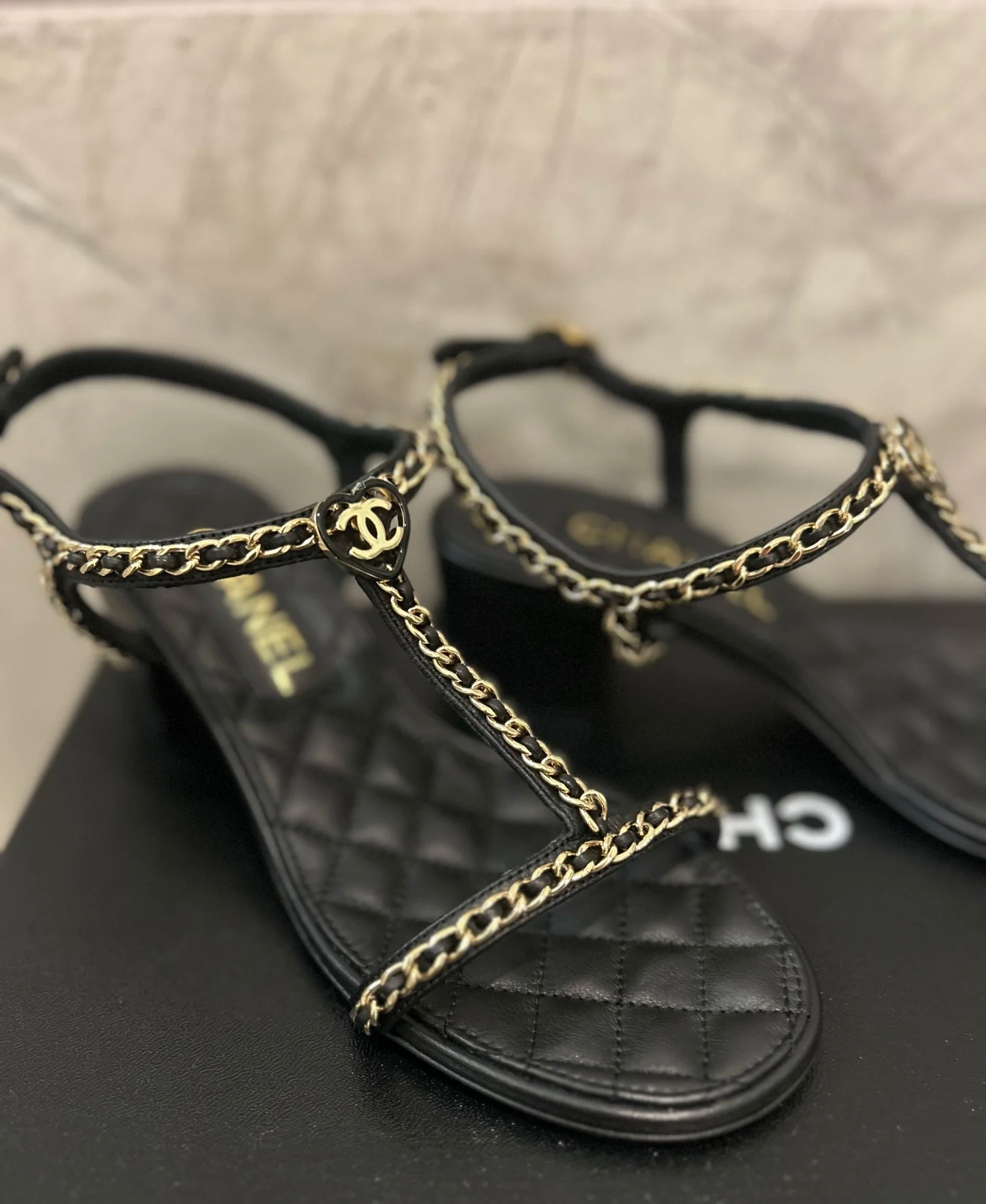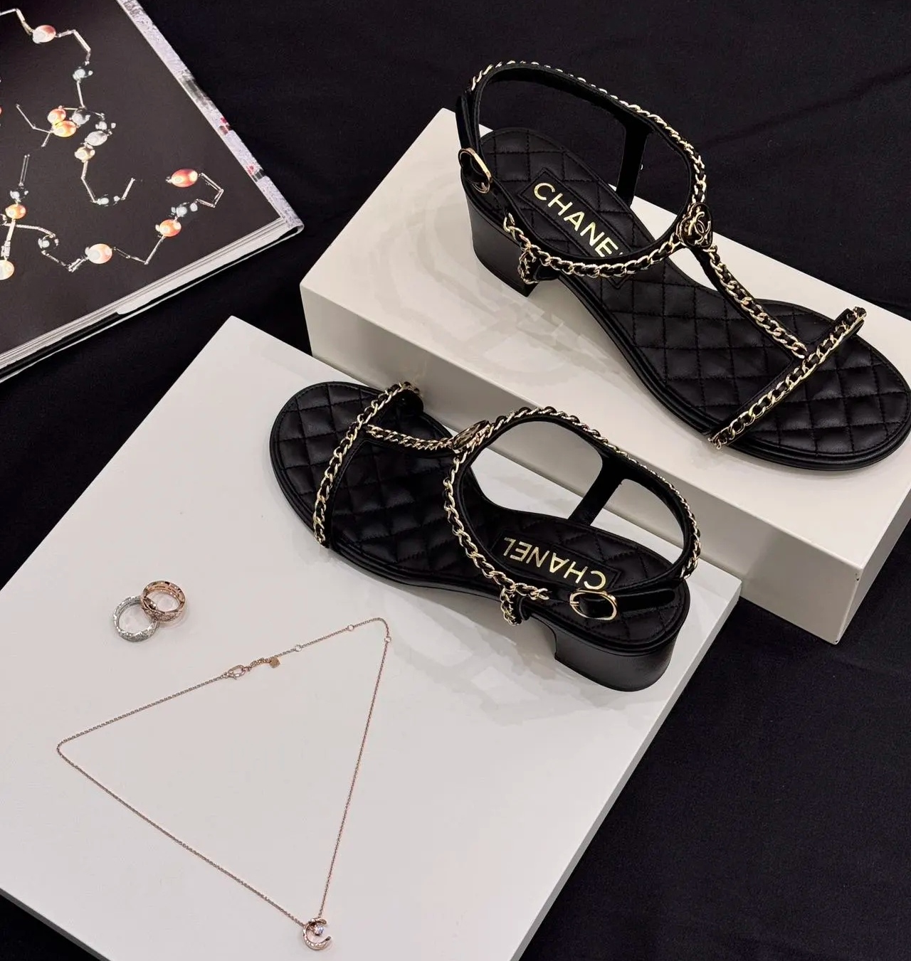 小香新款链条凉鞋,搭什么都好看,大气时髦气质,也复古小性感,工字型链条感解放双脚,同时也显脚面纤细。小方跟更稳。
