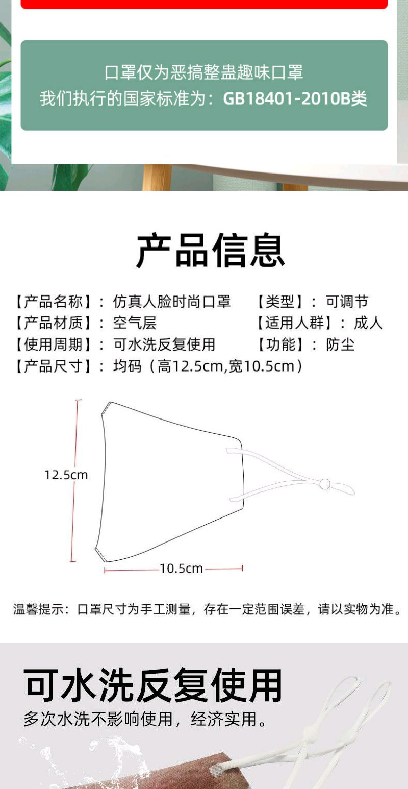 搞笑夸张表情系列回头率超高的3D印花口罩男女通用